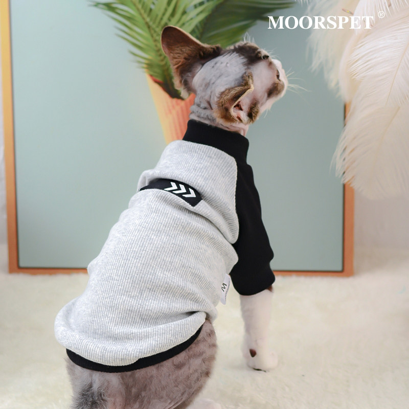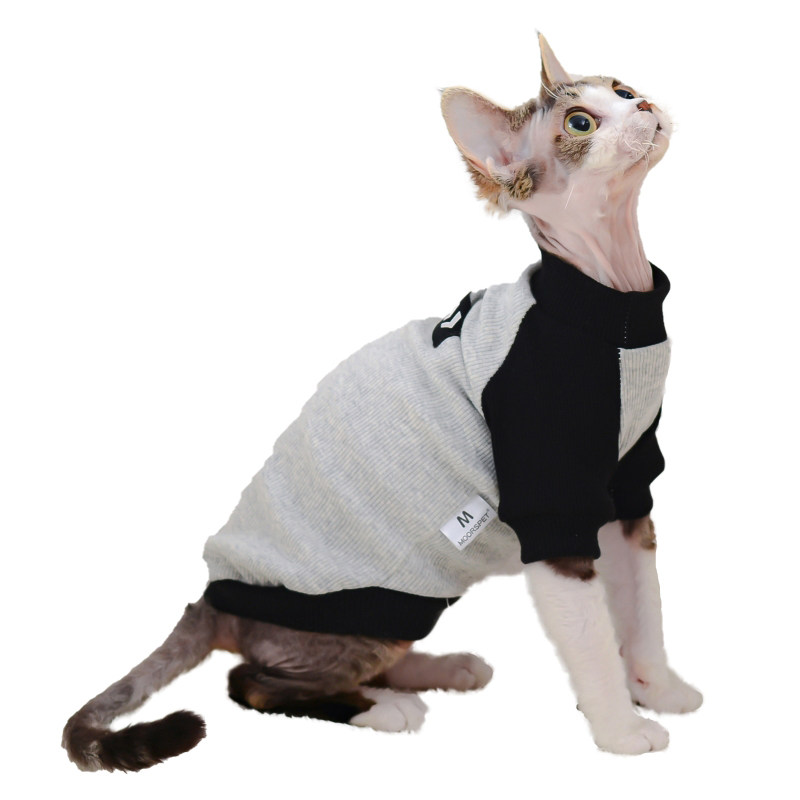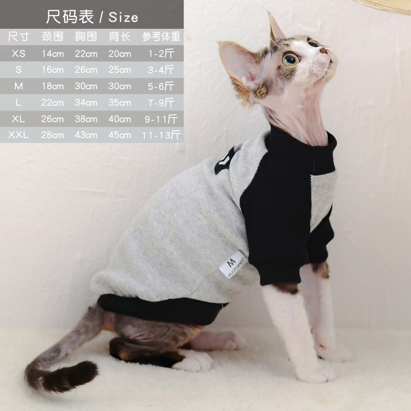 MOMO German hairless cat clothes ins thin British short blue cat stretch trendy splicing clothes pet T-shirt pure cotton