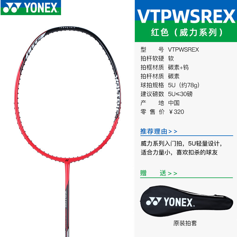 YONEX Younnieks Yy Badminton Racket Training Competition Full Carbon Super Light Power VTPPWSREX Single Shot
