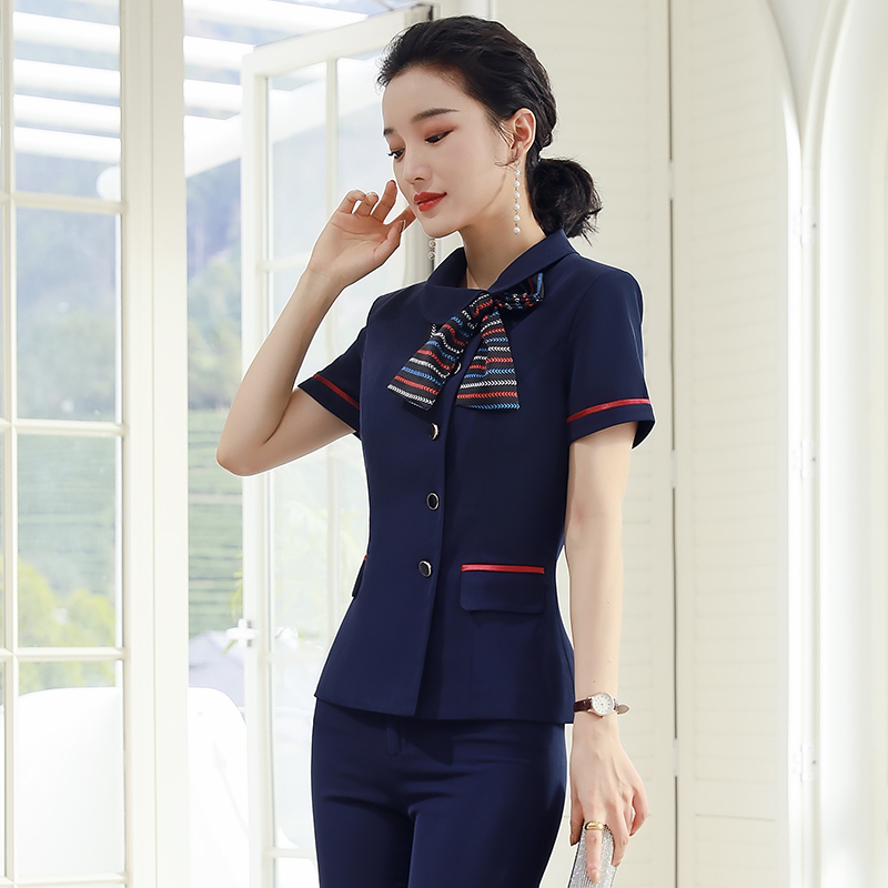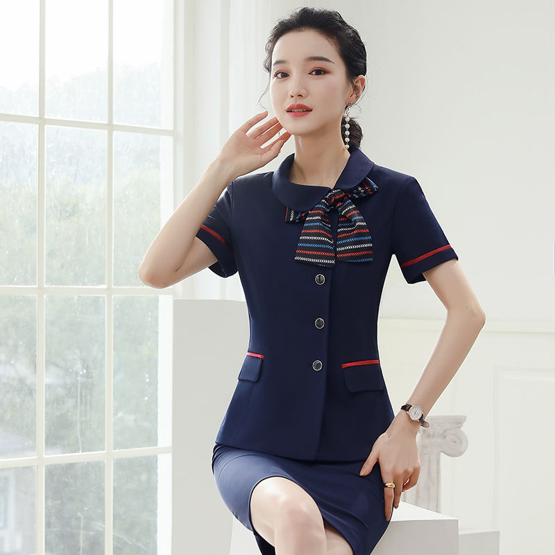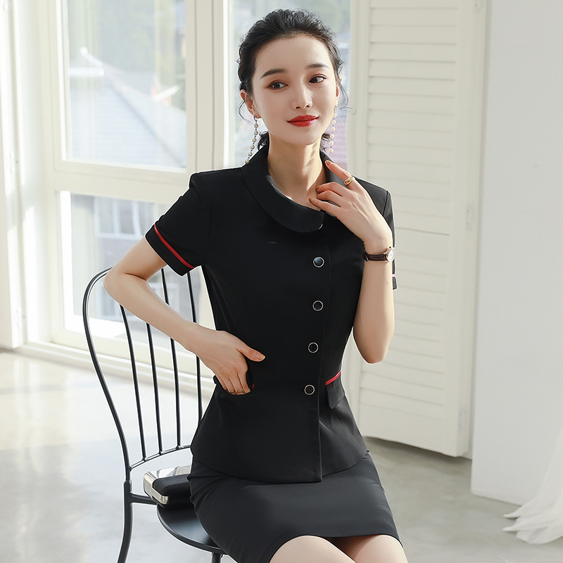 Blue (short-sleeved top, skirt), black (short-sleeved top, short skirt), blue (short-sleeved top, pants), black (short-sleeved top, pants), one-piece blue short-sleeved top, one-piece black short-sleeved top