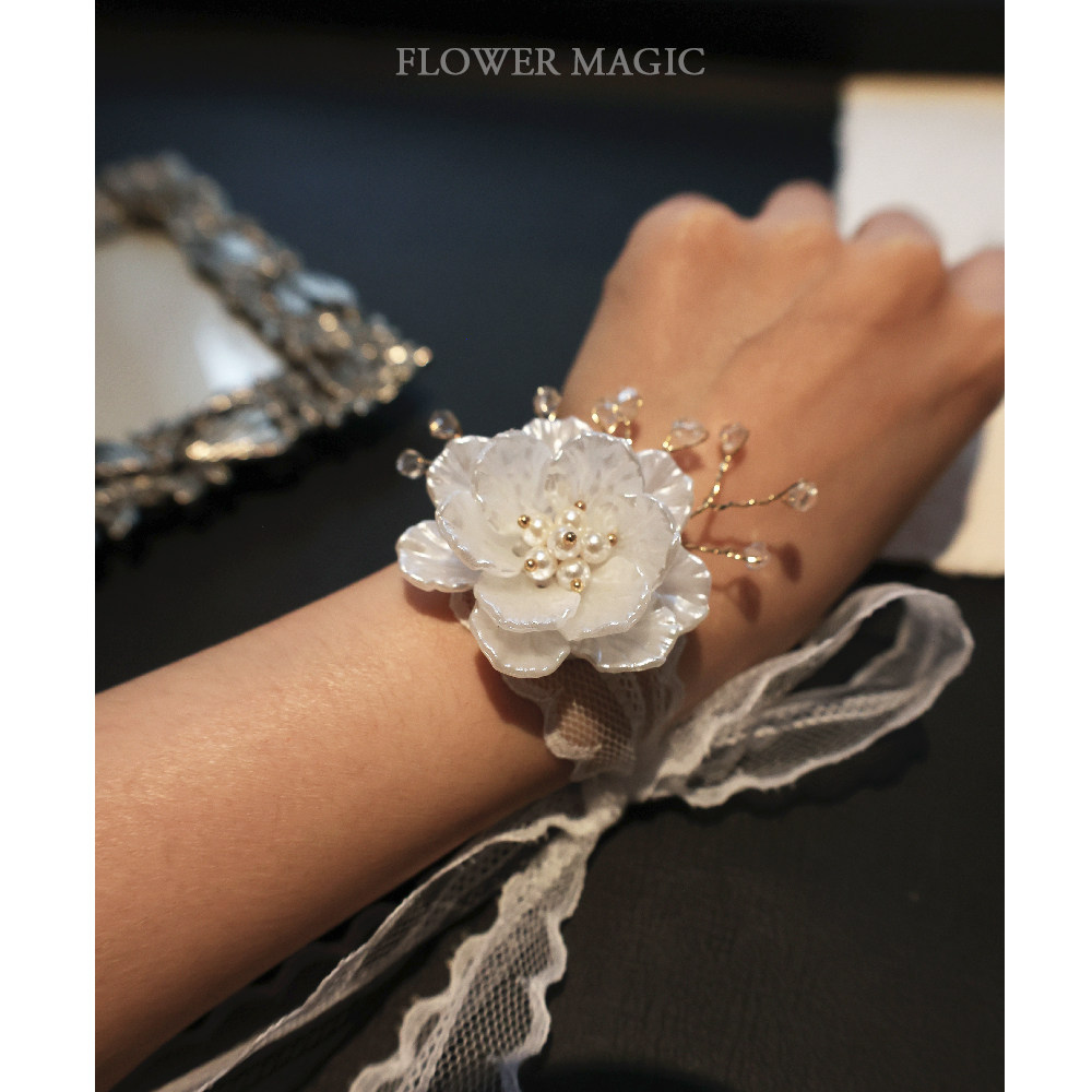 Crystal Fairy Gas Show Gas Lace Only Beauty Shells Flowers Pearls Wrist Flowers Bridal Bridesmaids Wedding Gift lace with handflowers-Taobao