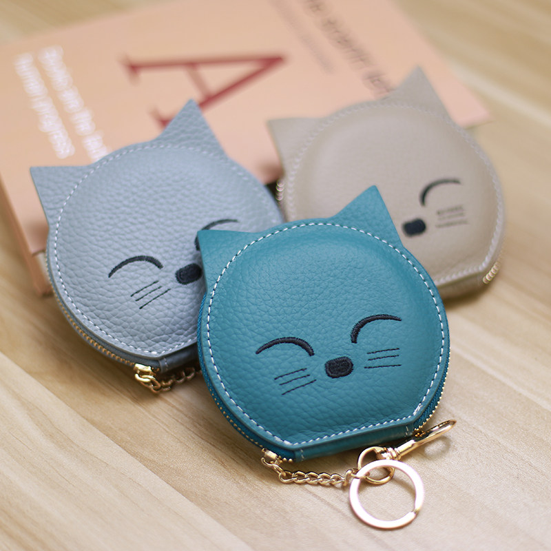2022 new Japan-ROK cartoon cow leather creative zero wallet card bag genuine leather coin bag kitty bag pendant key bag