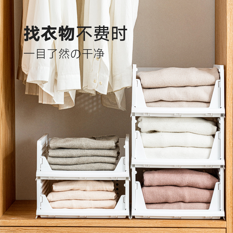 Wardrobe storage layered artifact wardrobe divider home plastic clothing storage box clothes drawer type storage box