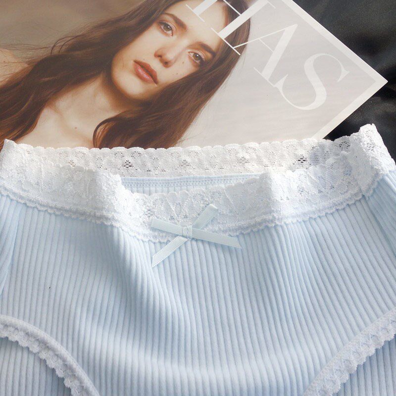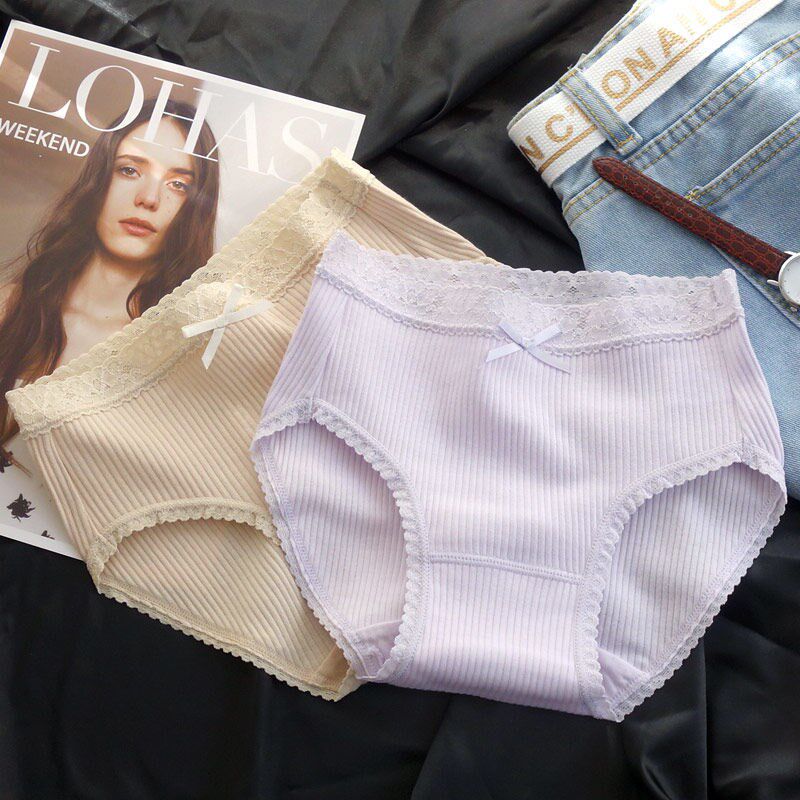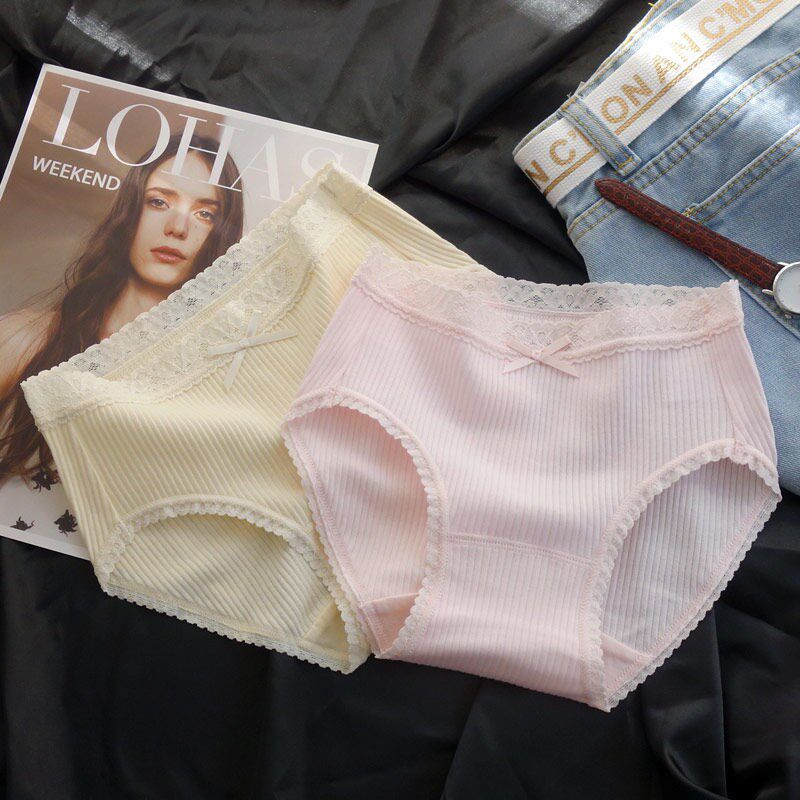 Day Ensemble Pure White Sweetness Pants Female Pure Cotton Lace Side Antibacterial Mid Waist Large Size Breathable Adolescent Raw Triangle Pants Head
