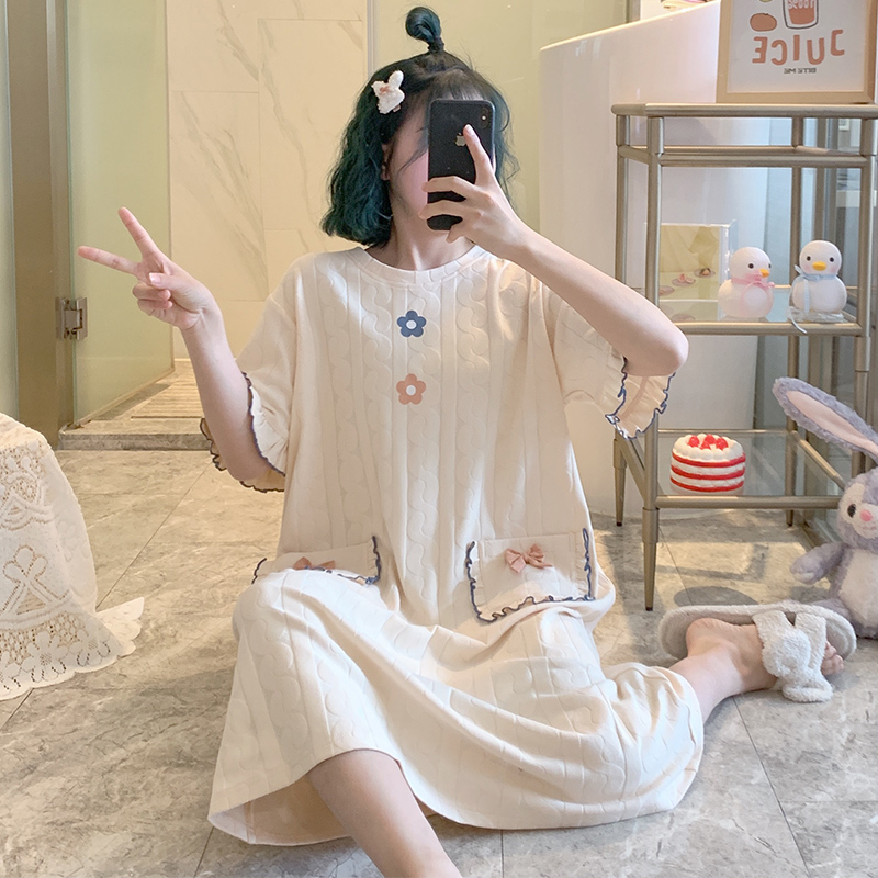 Princess Wind Sleeping Dress Woman Summer Pyjamas Slim pure cotton short sleeves cute little flowers big size students can wear home clothes outside