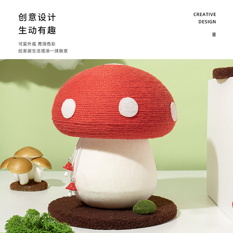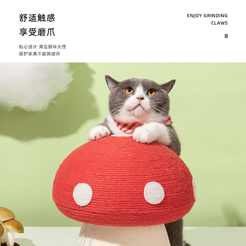 Cat Grabbing Plate Abrasion Resistant of Scrap Litter Cat Grabbing Column Sisal Vertical Small Cat Climbing Rack Red Umbrella Mushroom Cat Toy Cat Catch Ball
