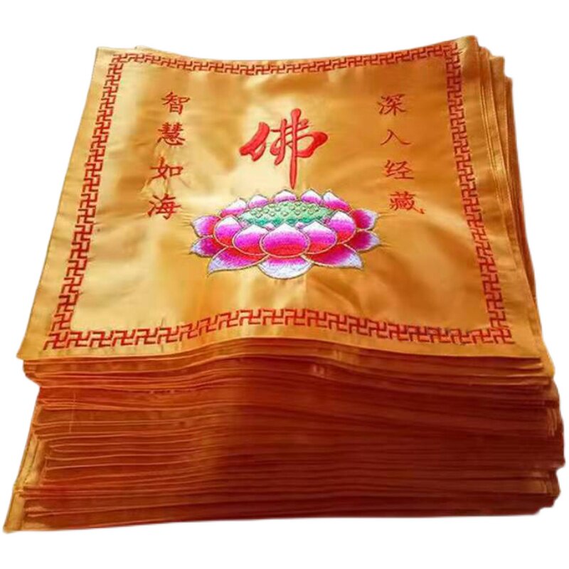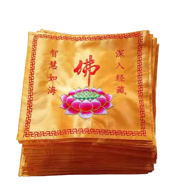 Embroidery scripture book cover cloth yellow Buddha character large lotus double-layer scripture book bag Buddha hall embroidery cover cloth thick