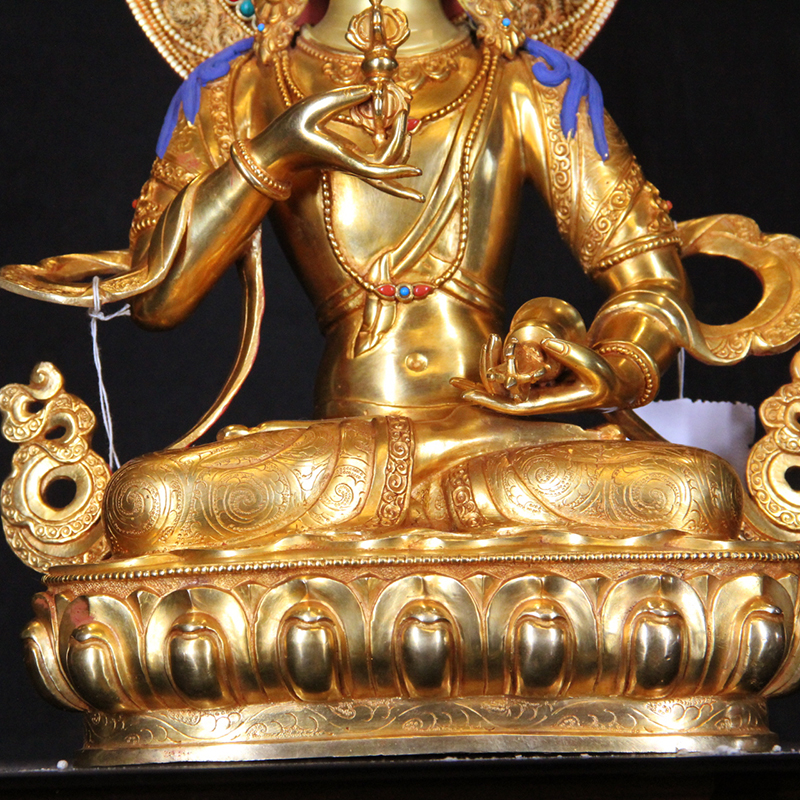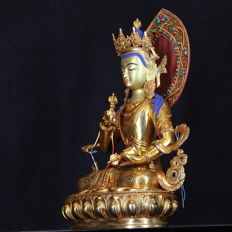 Tibetan Vajrasattva Buddha statue Nepal pure handmade copper gilded belt backlit Vajrasattva hammer tabletop ornament 38cm