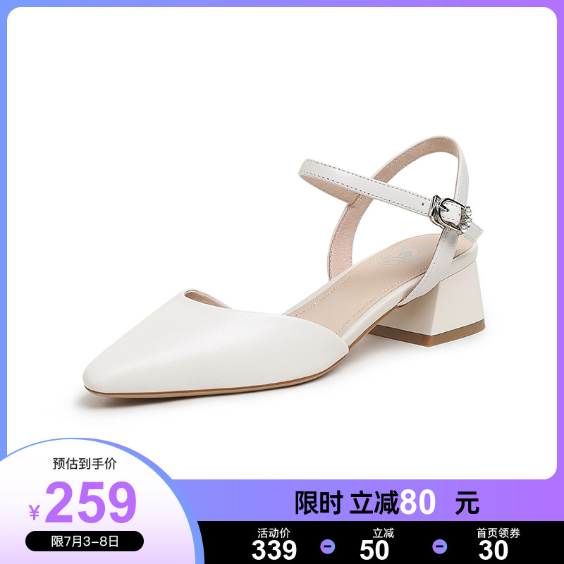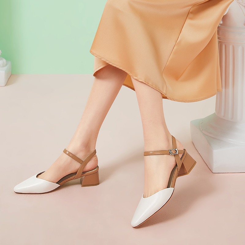 Camel women's shoes 2022 Summer new genuine leather pointed word, cingulate female wind Baotou rear empty heel sandal women