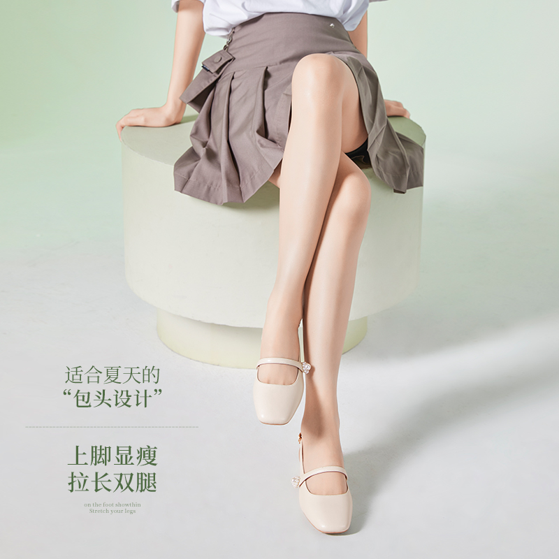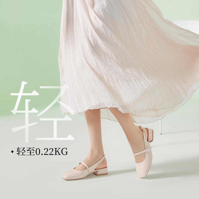 Camel 2022 Summer new French style Baotou Marie precious shoes coarse heel fairy wind rear sky low heel single shoe woman sandals