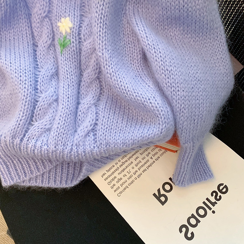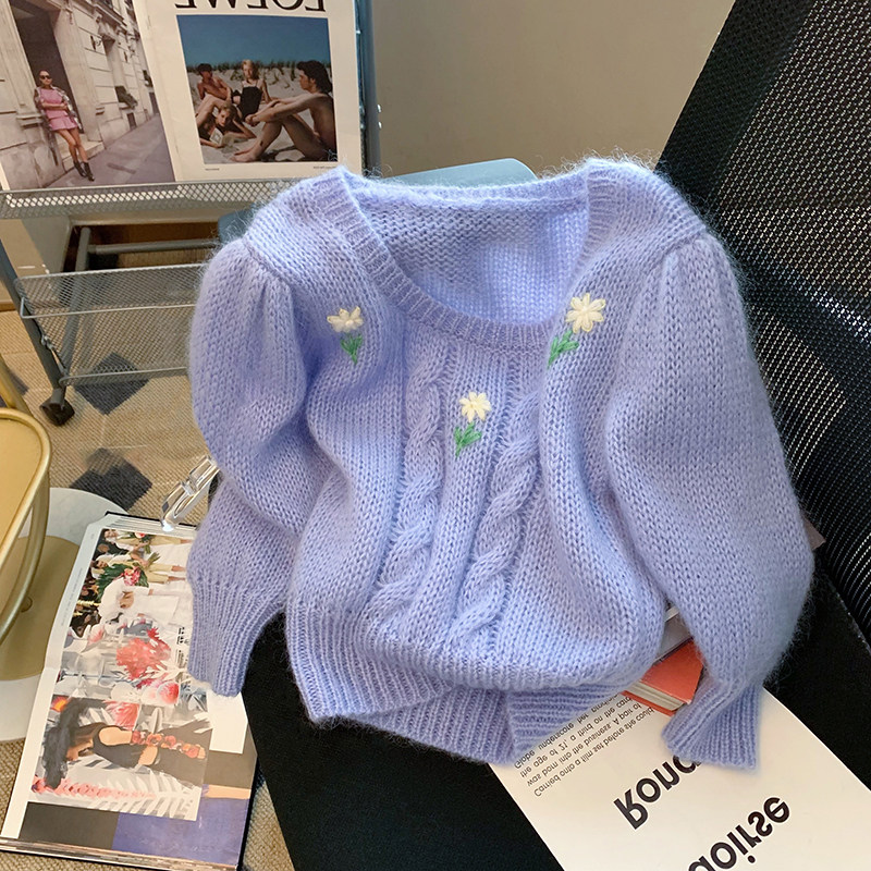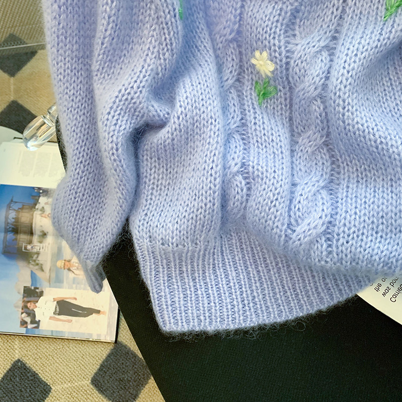 Day series retro style Lazy Breeze don't make flowers embroidered sweater women's spring and autumn loose with small crowdsourced sweet and spicy windy shorts