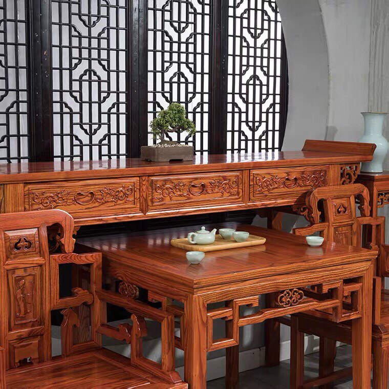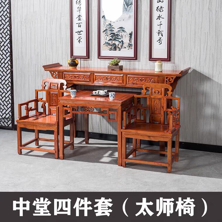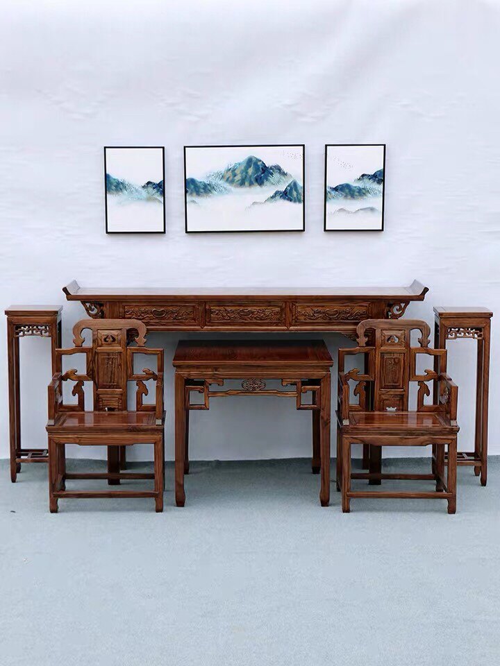 Chinese-style rural middle hall six-piece set four-piece set elm antique hall furniture solid wood eight immortal table for table combination