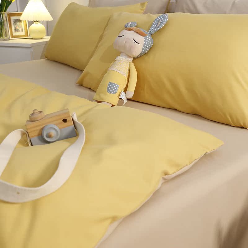 Washed cotton sheets and quilt cover four-piece Nordic summer yellow quilt student dormitory single bed sheet three-piece set