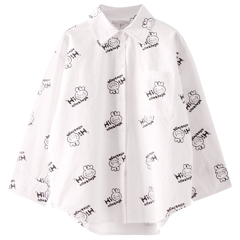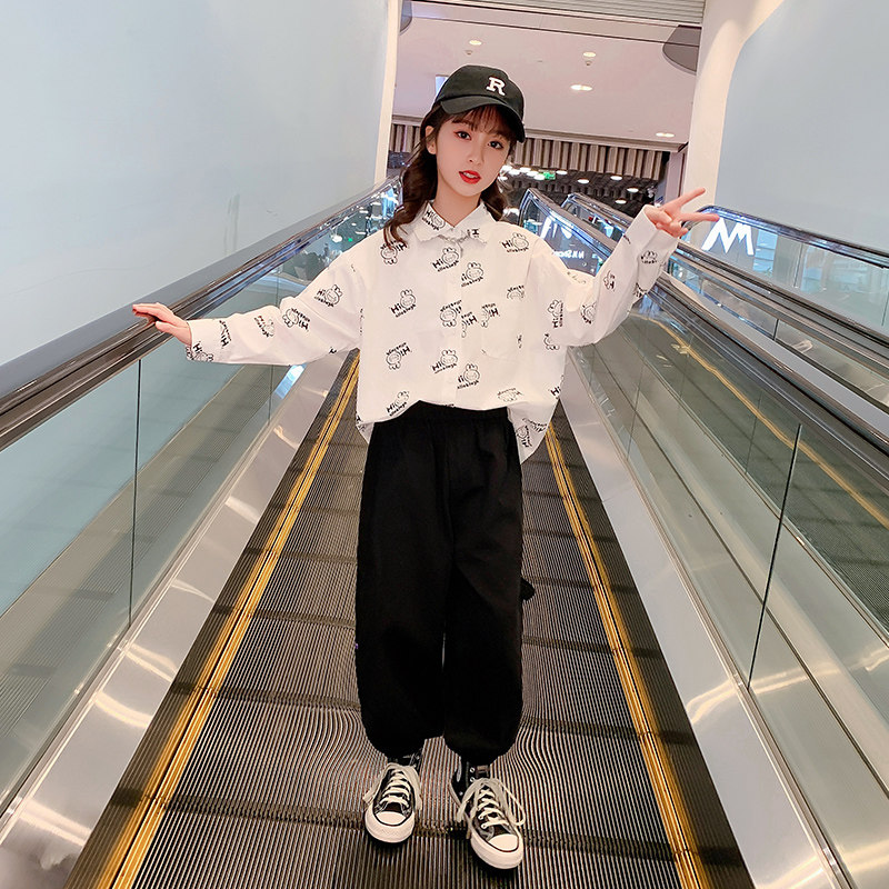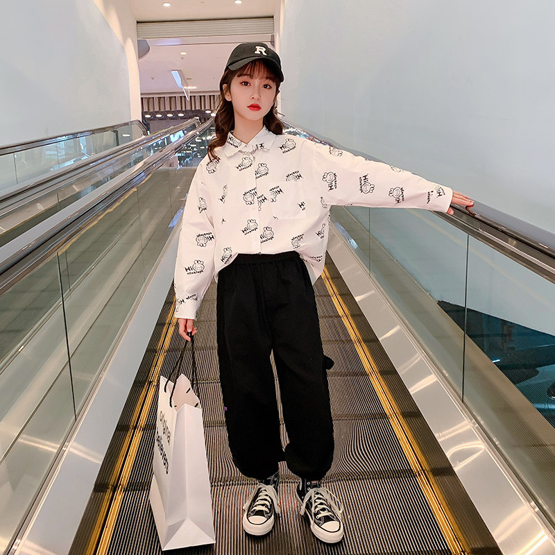 Girl Shirt 2022 Spring Dress New Korean Version Children Foreign Pie Full Print Shirt CUHK Child Spring Autumn Long Sleeve Blouse