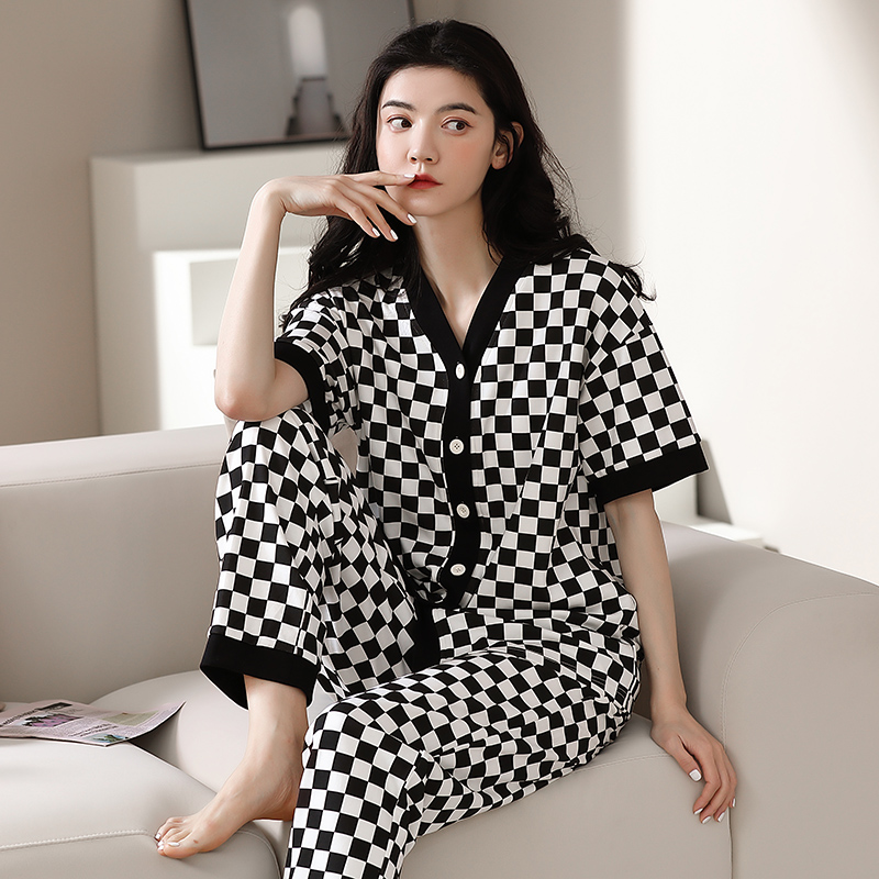 Gujin@2022 Summer New Pajamas Women's Pure Cotton Short-sleeved Trousers Cardigan Kimono Thin Homewear Set