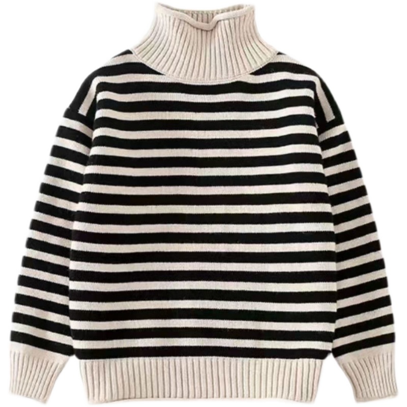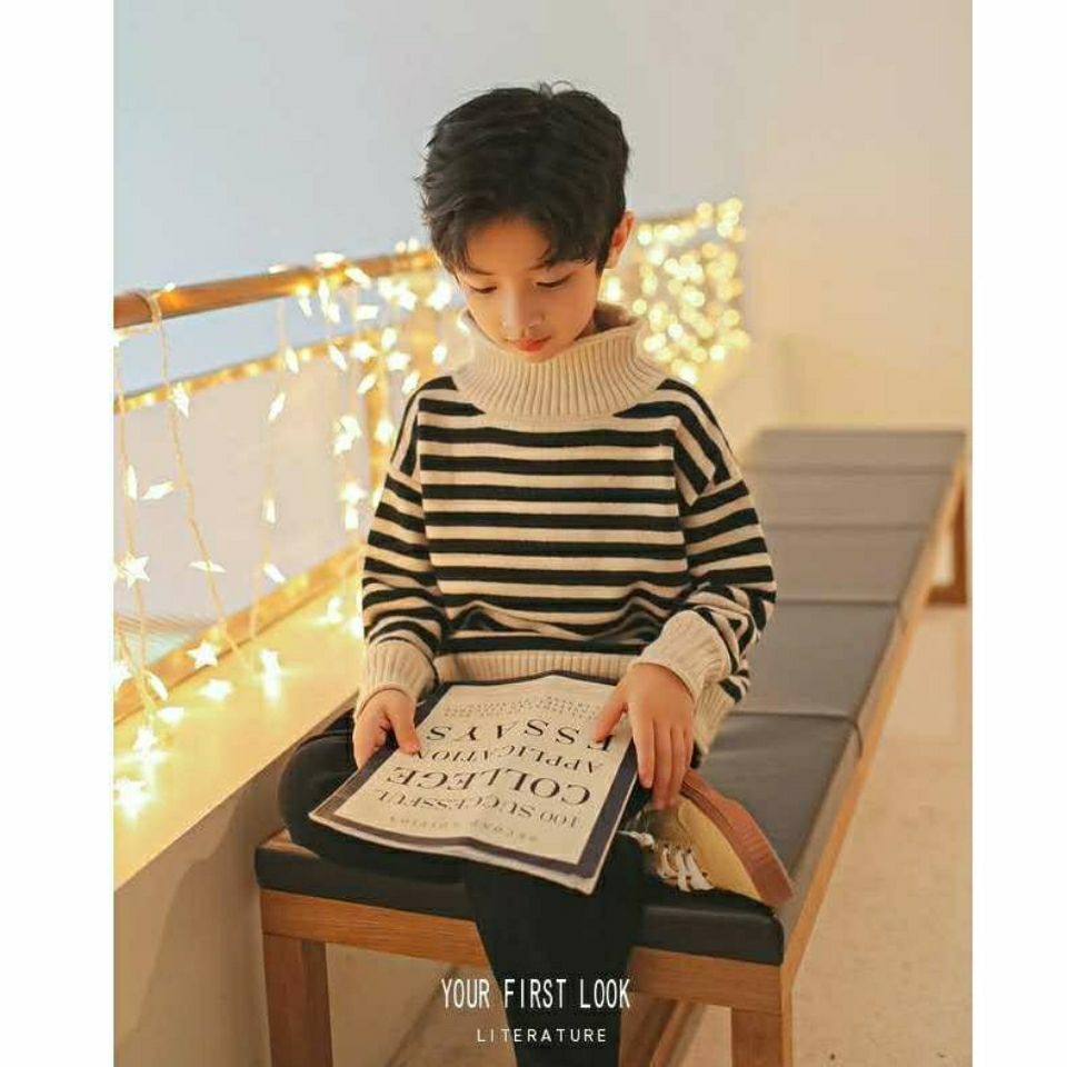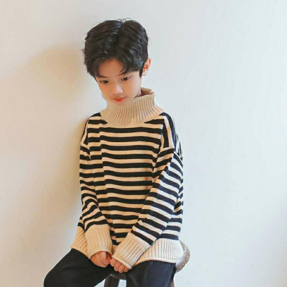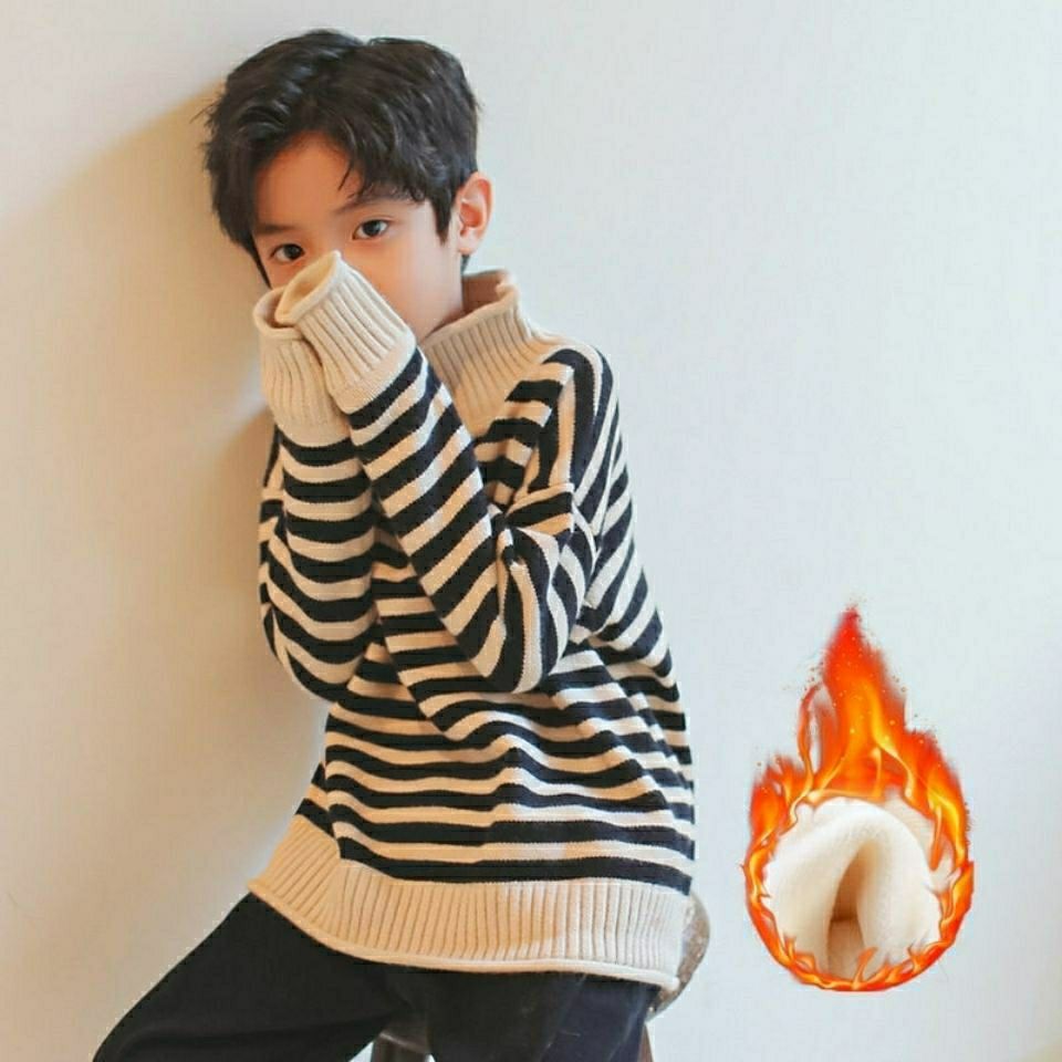 Boy autumn winter clothes Han edition thickened knitting blouse 2022 new large children's striped high - collar sweater coat