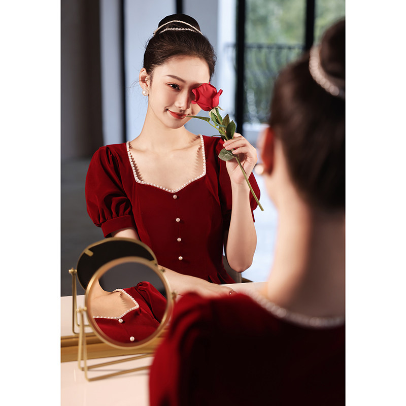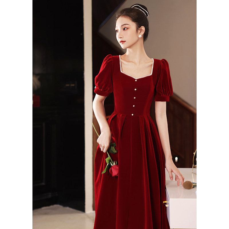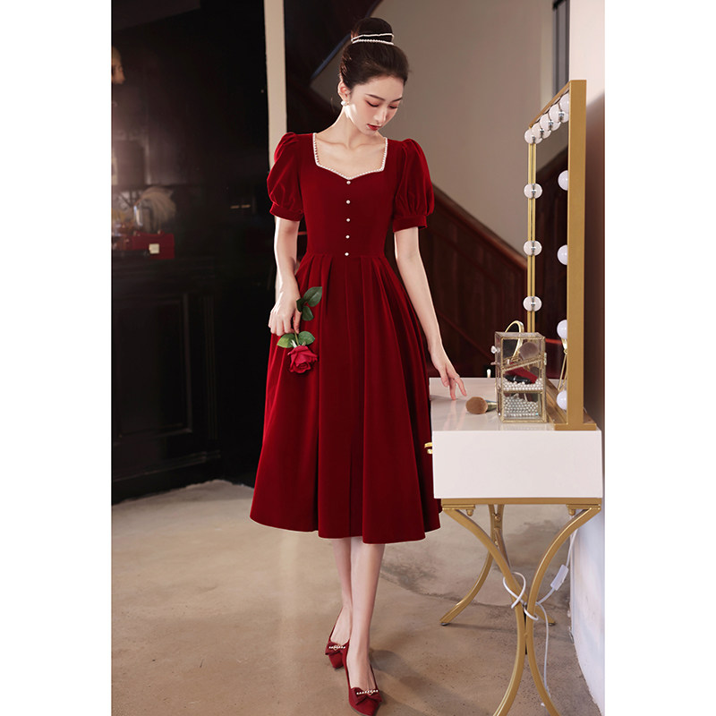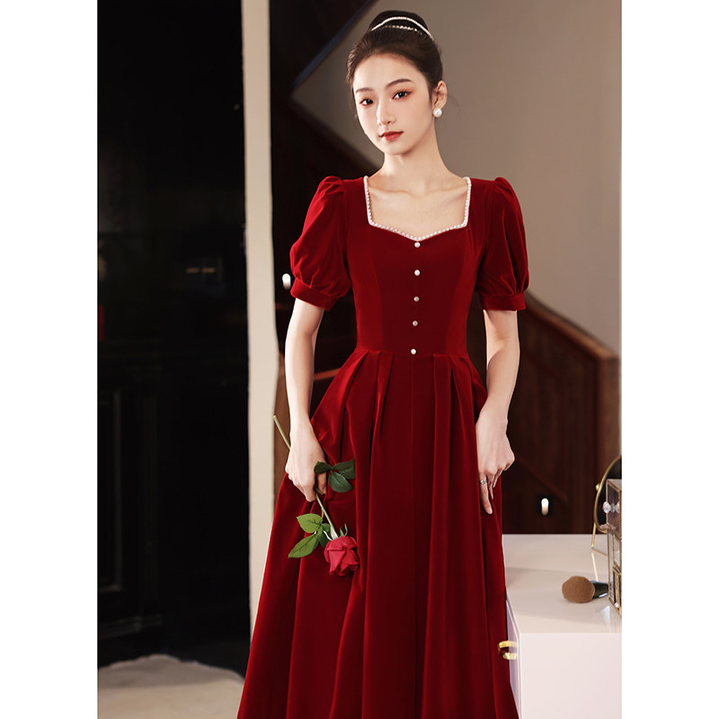 Toast to the bridal wine red color normally able to wear the fugitive princess Little Subwoman High level Engagement Ocean Dress Summer