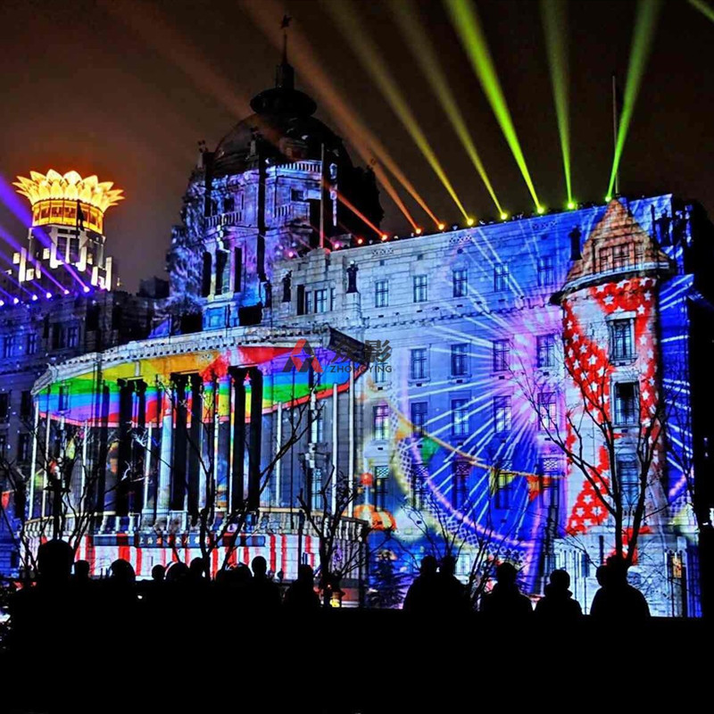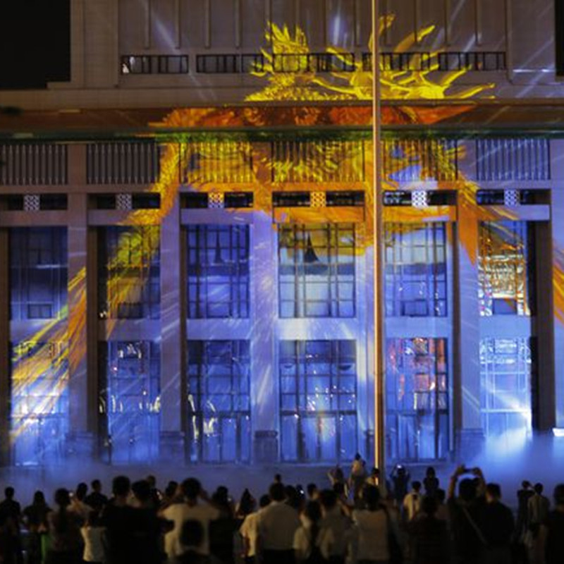 Outdoor glass building mountain wall outdoor water curtain project projector building show large-scale laser projection project