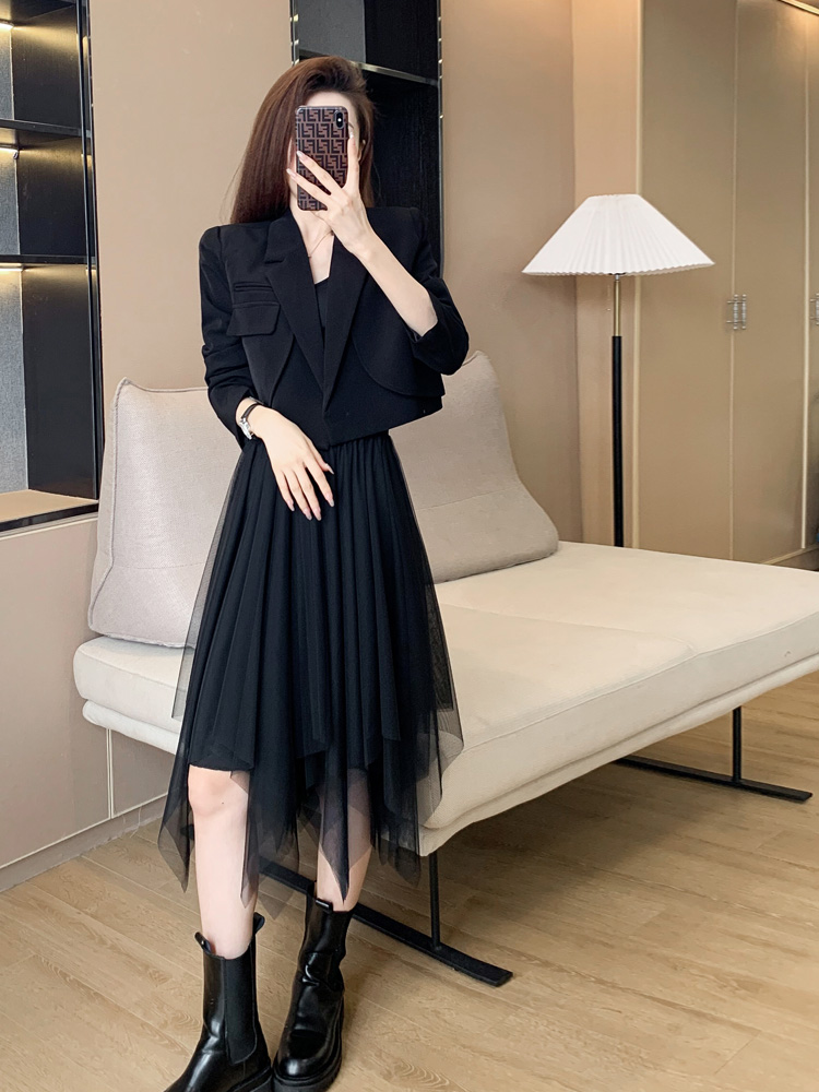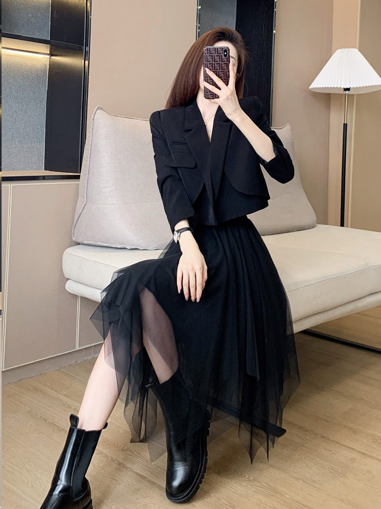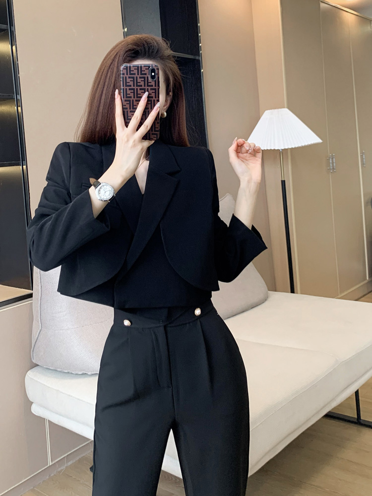 Black short SUIT JACKET LADY 2022 Spring new Inn wind small Seine with a small western suit