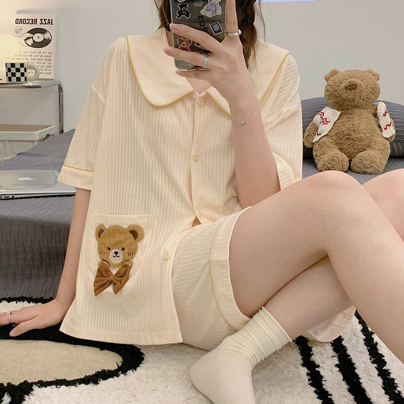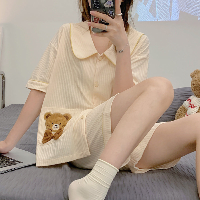 Sleepwear Women's Summer 2022 New Pure Cotton Short Sleeve Cute Spring Summer Thin size Large size Senior Sensation Home Suit Suit
