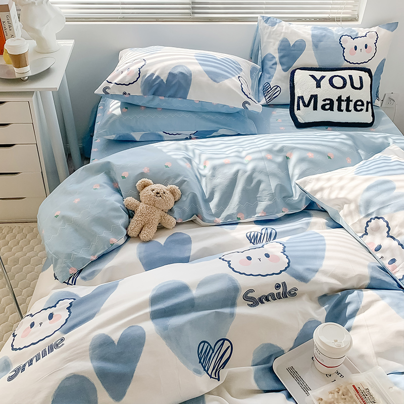 ins net red wind pure cotton four pieces style 100 full cotton children bed linen bed hat quilt cover three sets of bedding