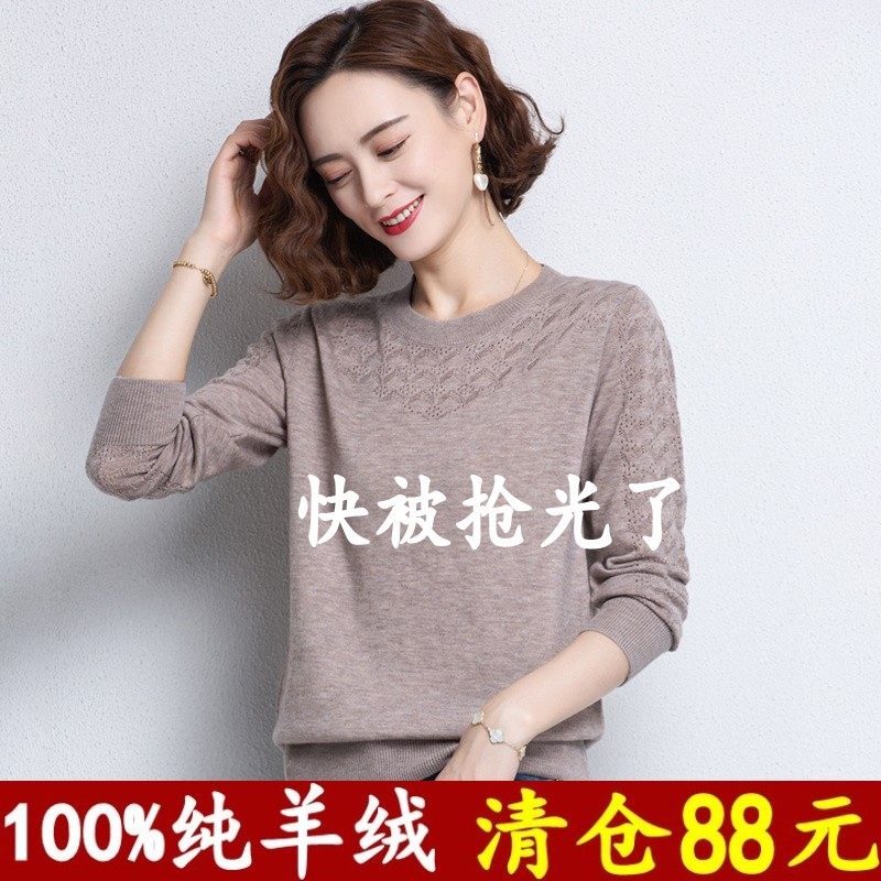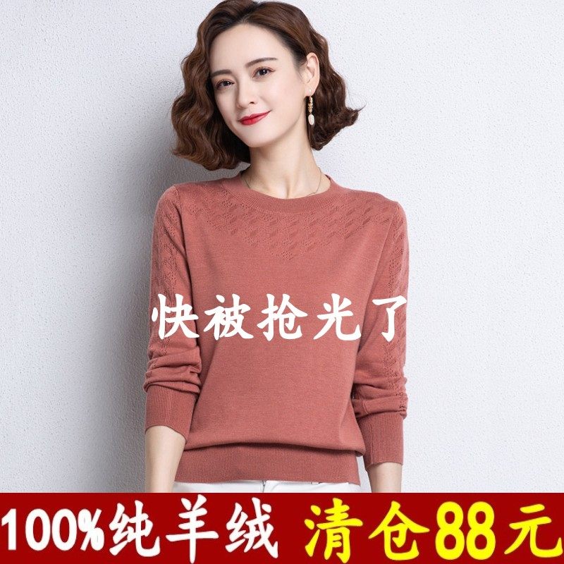 City of Ordos 100 pure cashmere sweatshirt with thin outside wearing loose round collar knit long sleeves bottom-shirt woman