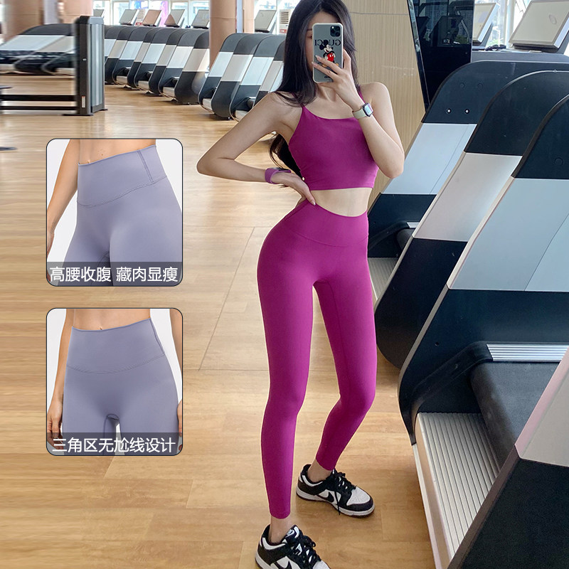 Internet celebrity fitness suit female fashion tight sexy quick-drying sports running gym yoga suit two-piece spring and summer