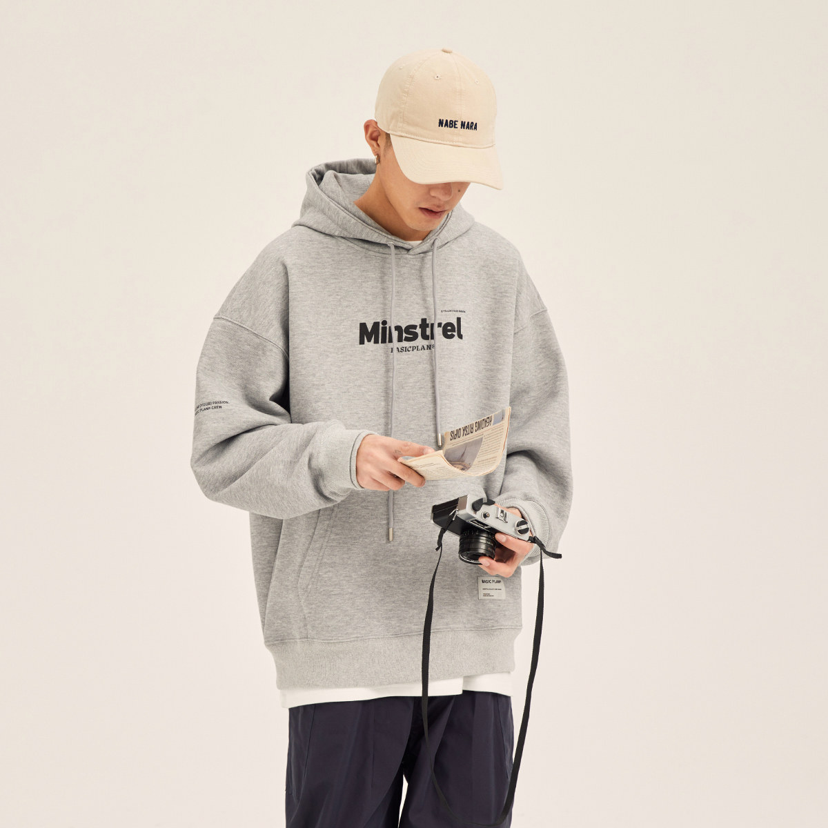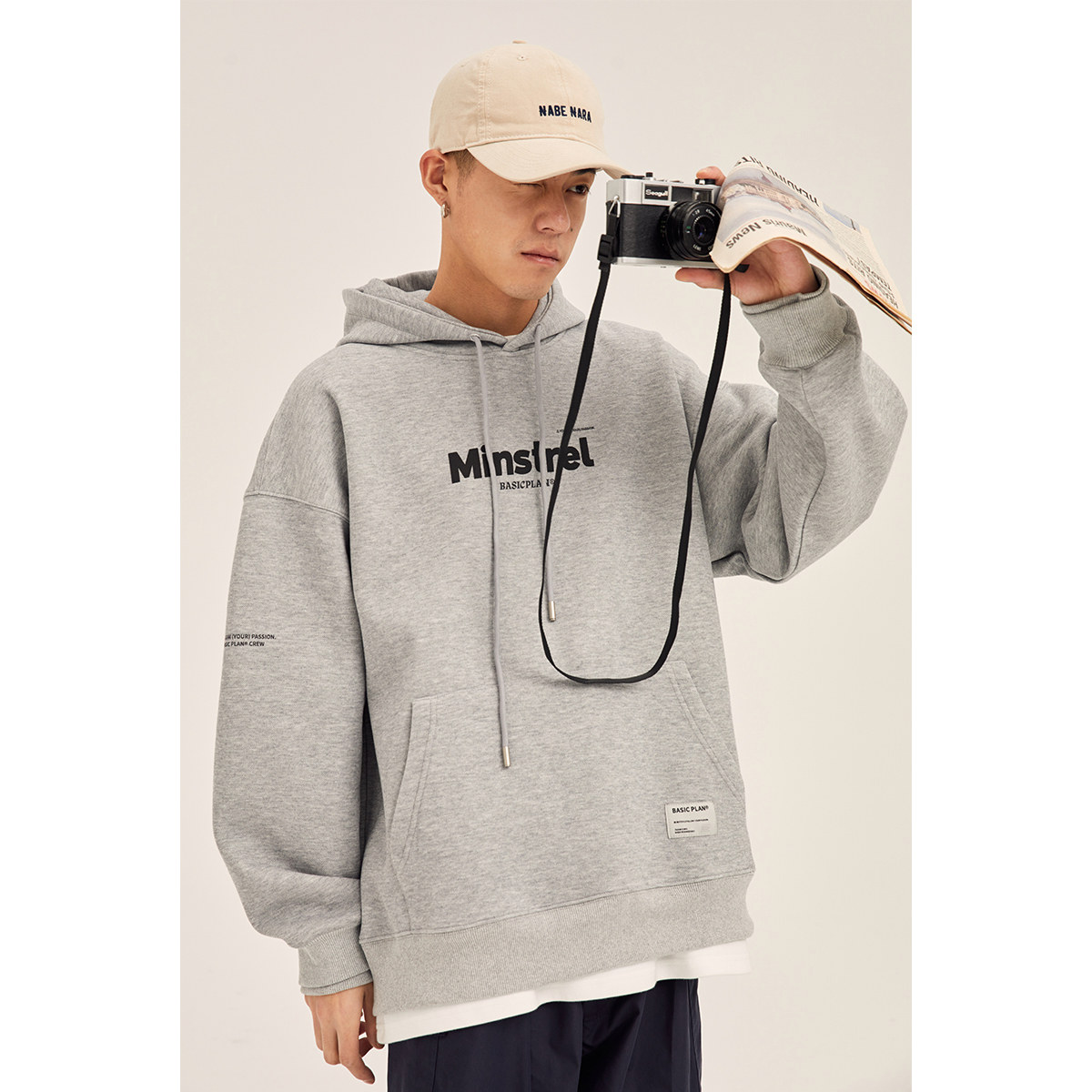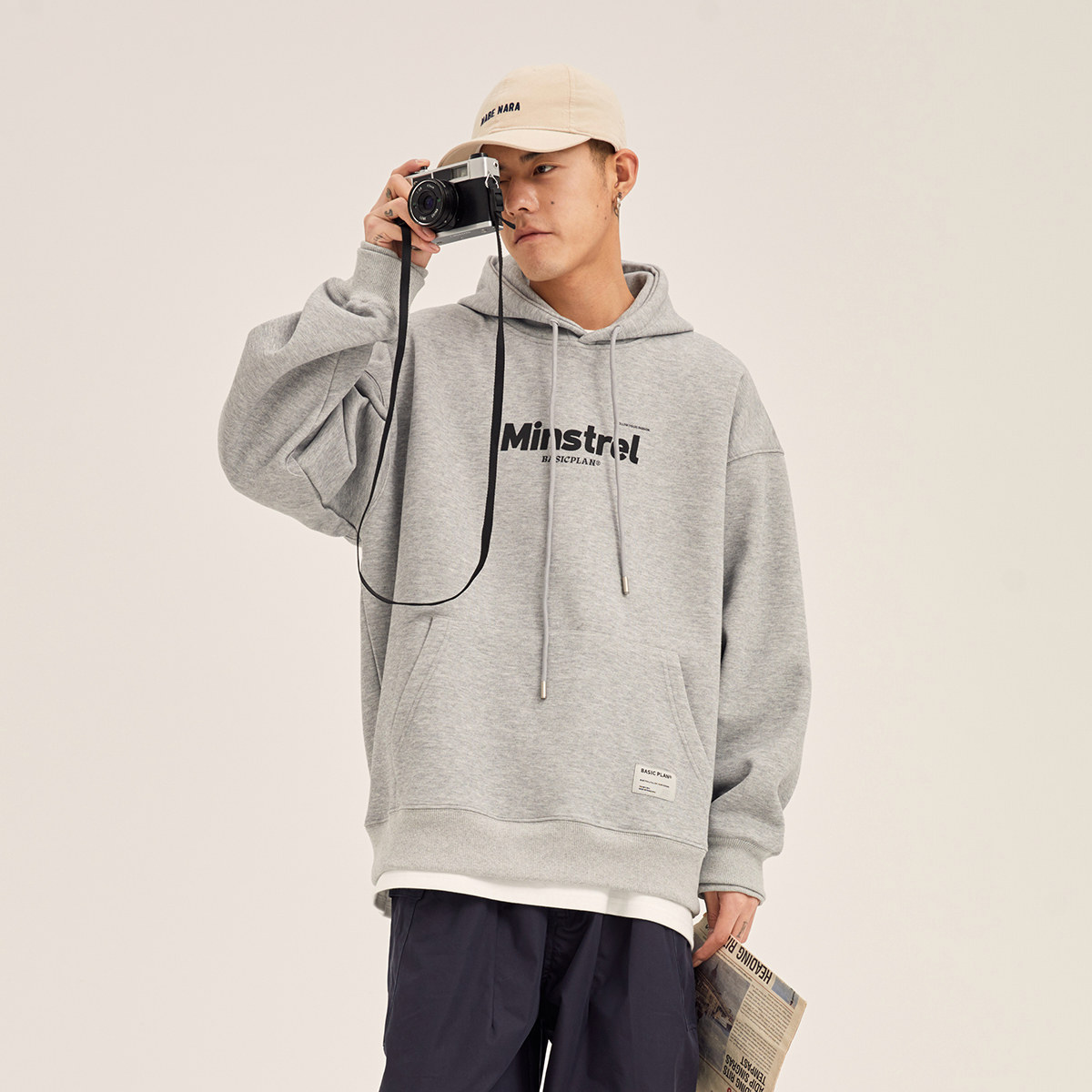 Male Track Autumn Winter New Small Letters Heavy lbs plus suede thickened Lianhood Men's American-style retro 100 lap grey hoodie-Taobao