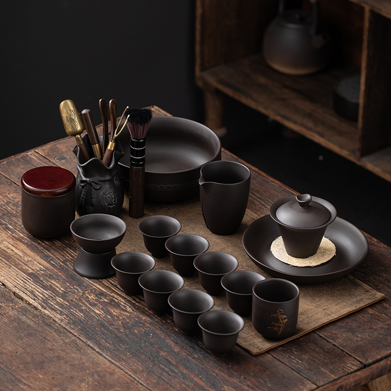 Zisha tea set set teapot cover bowl teacup home living room retro style Japanese gift can raise kung fu complete set