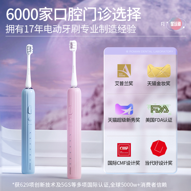 ROAMMAN Roman electric toothbrush male and female couples Adult Charging Fully Automatic Waterproof New Product Planet Brush F1