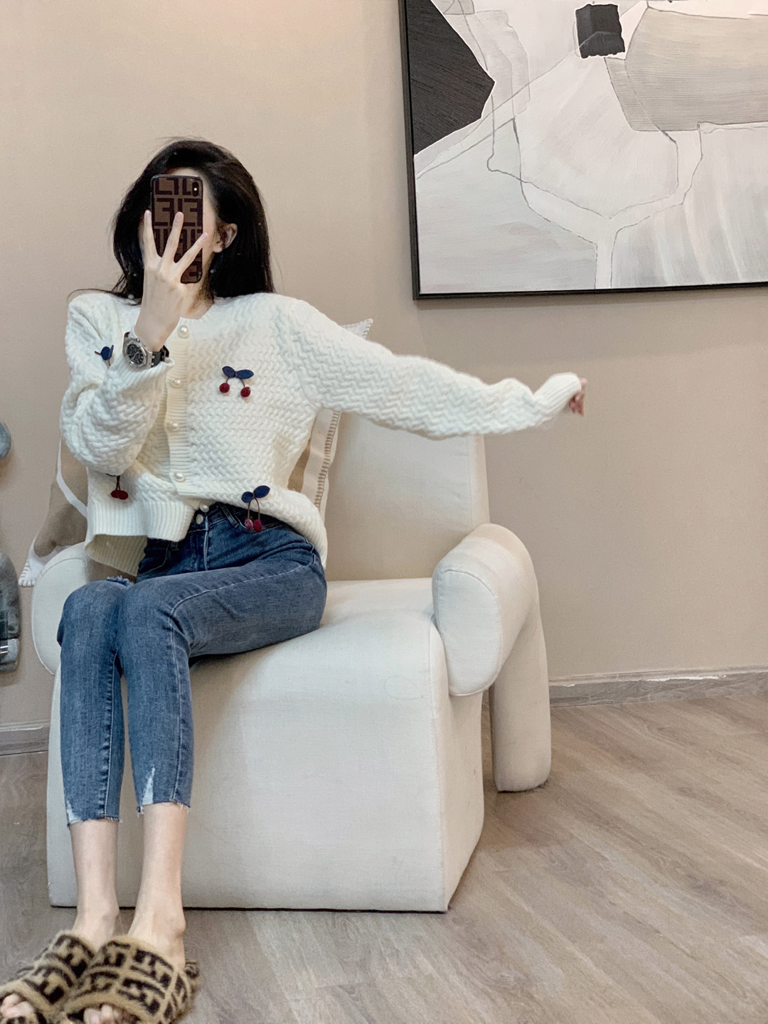 Leathercat knitted cardigan jacket women's early autumn new design sense niche Japanese sweet lazy wind top