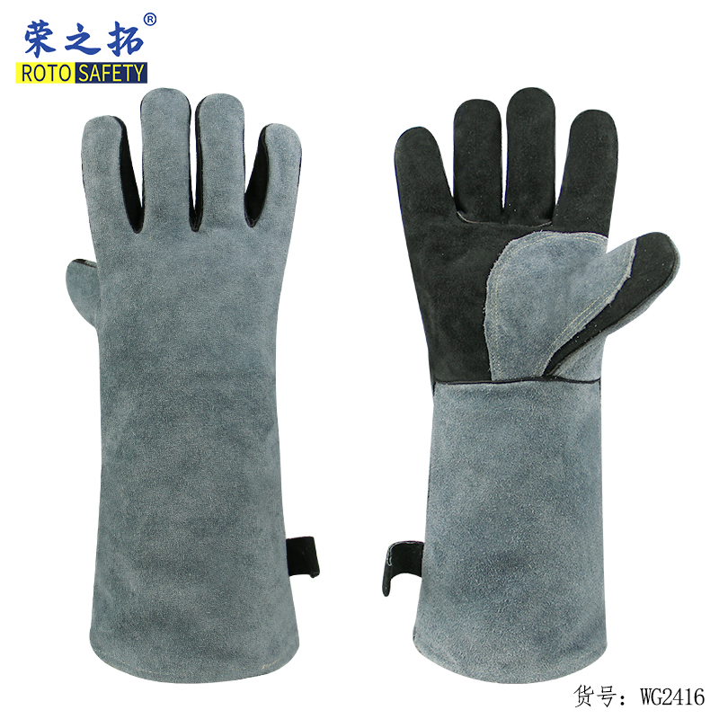 40 cm cow leather plus aluminum foil electric welding barbecue gloves 40 cm grey black cow leather electric welding barbecue gloves 35 cm red and black splicing fireproof wire cow leather gloves 35 cm red ash splicing fireproof wire cow leather gloves 2