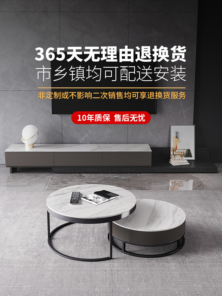 Italian coffee table TV cabinet combination simple modern small apartment minimalist living room furniture telescopic rock board TV cabinet