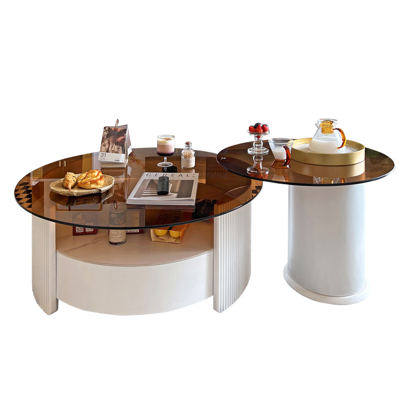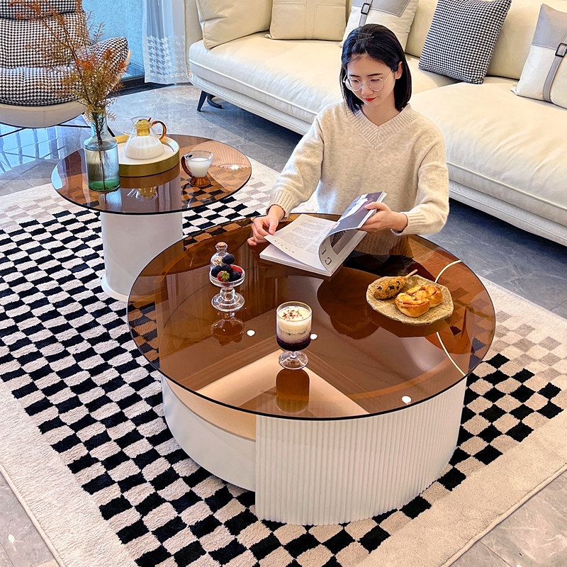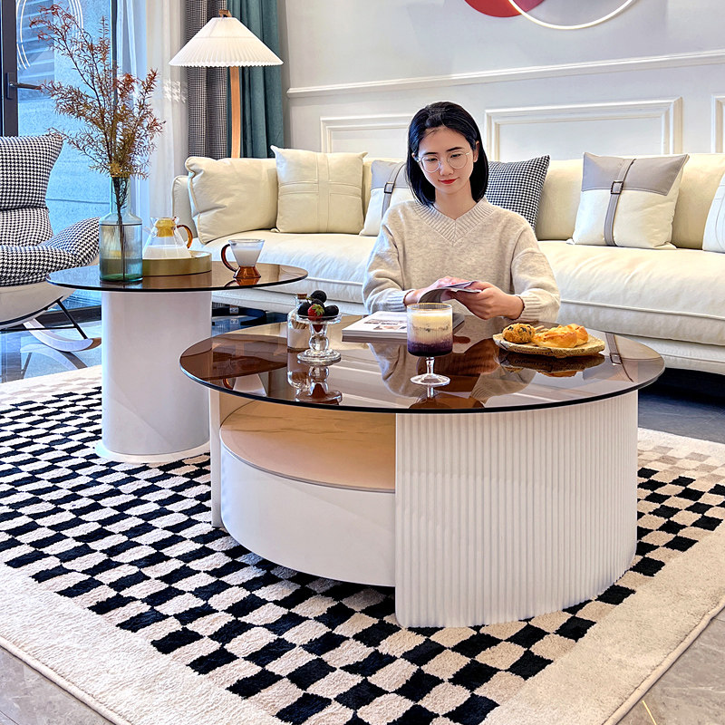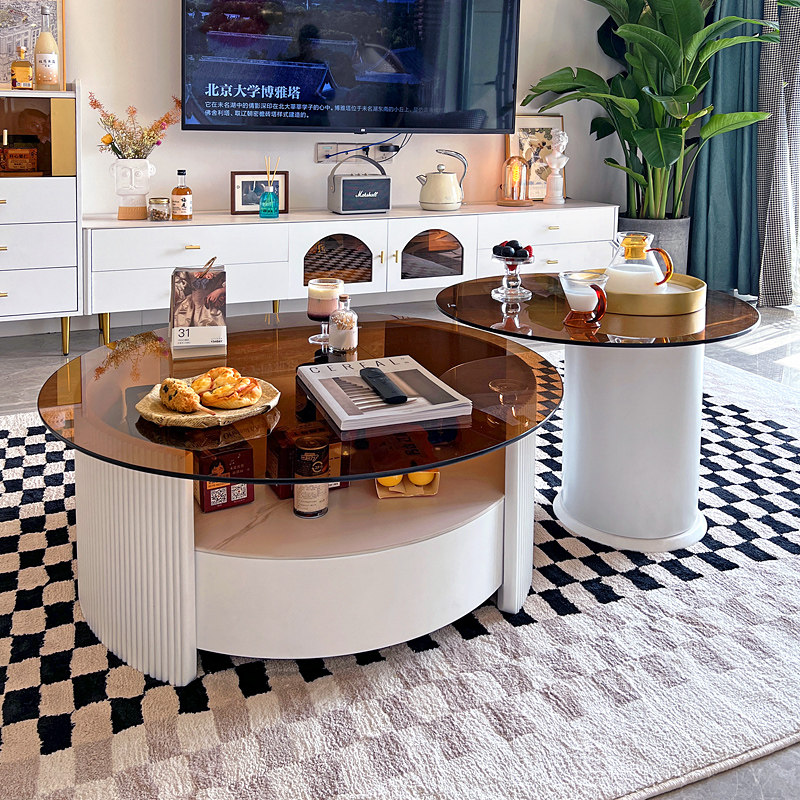 Large and small apartment round coffee table simple modern living room light luxury slate net red TV cabinet combination