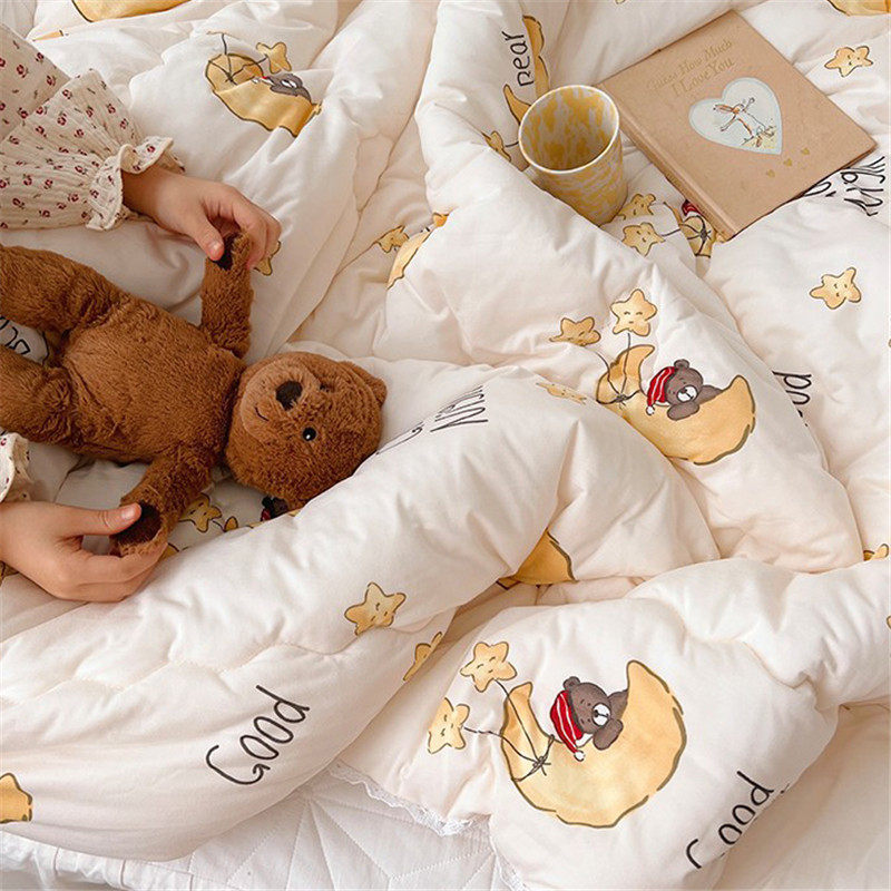 Cute cartoon ventilated cotton knitted summer quilt A class air-conditioned quilt summer cool quilt machine washable thin quilt children's student quilt