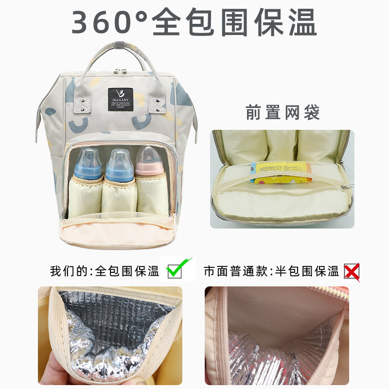 ib mommy bag 2022 new fashion versatile large capacity double shoulder back mother package mother and baby bag out of light