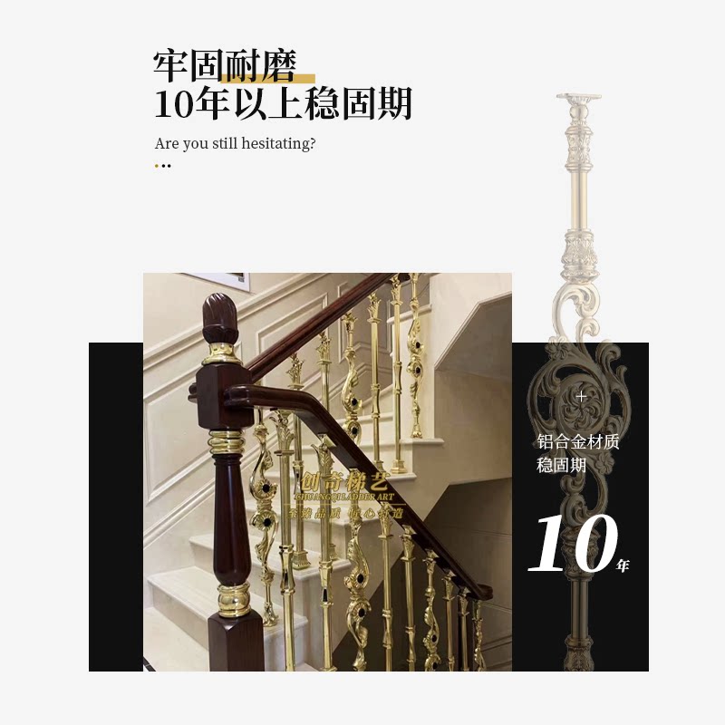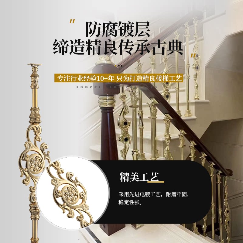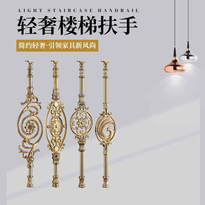 Flower board series American light luxury aluminum alloy K gold staircase handrail Office residential clubhouse villa railing guardrail