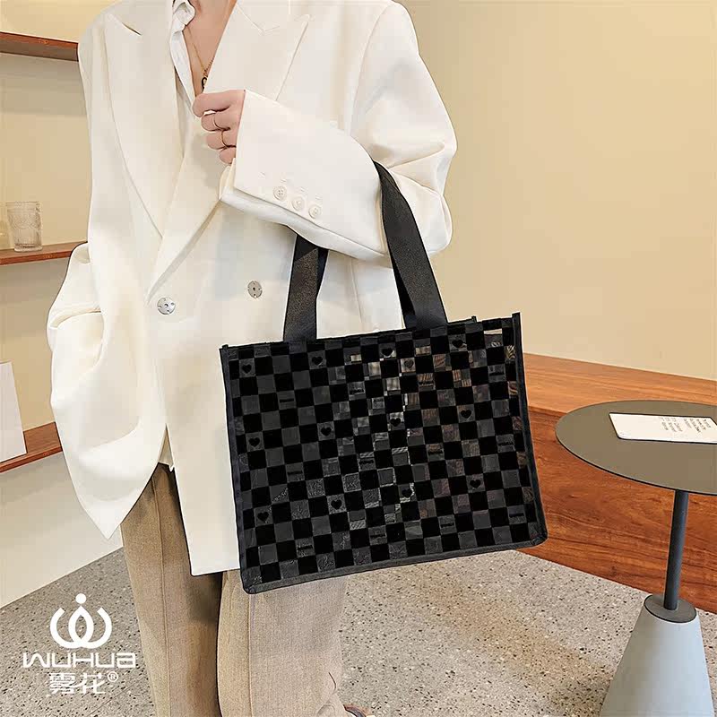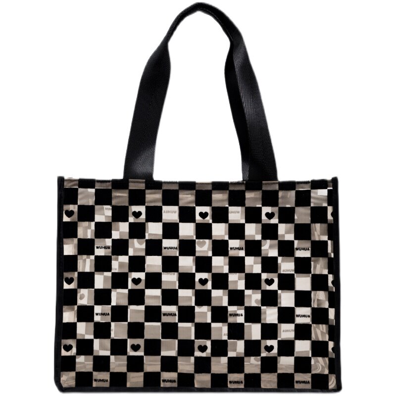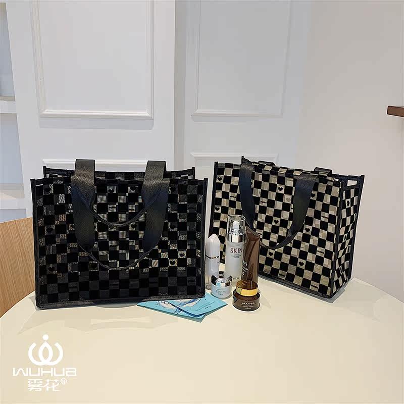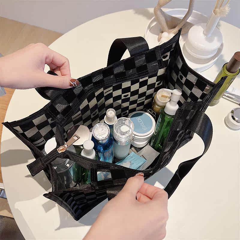 Fog flower mesh cosmetic bag chess and card grid transparent fashion large-capacity wash bag shoulder tote bag zipper square