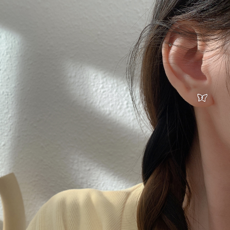 S925 Pure silver earneedle female ear hole design 2022 new sweet freshman tissue ear decoration