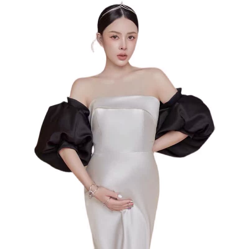1002 Hepburn pregnant women Photography Write a real fish tail dress Skirt Rental Photo Gallery with a picture of a gestation with a large belly