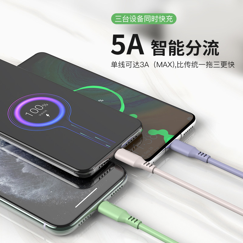 Data line three-in-one mobile phone charging wire machine one drag more than three head liquid soft glue multifunction applicable Apple type-c Android fast charge lengthened usb punching power 5A on-board flash charge 2A