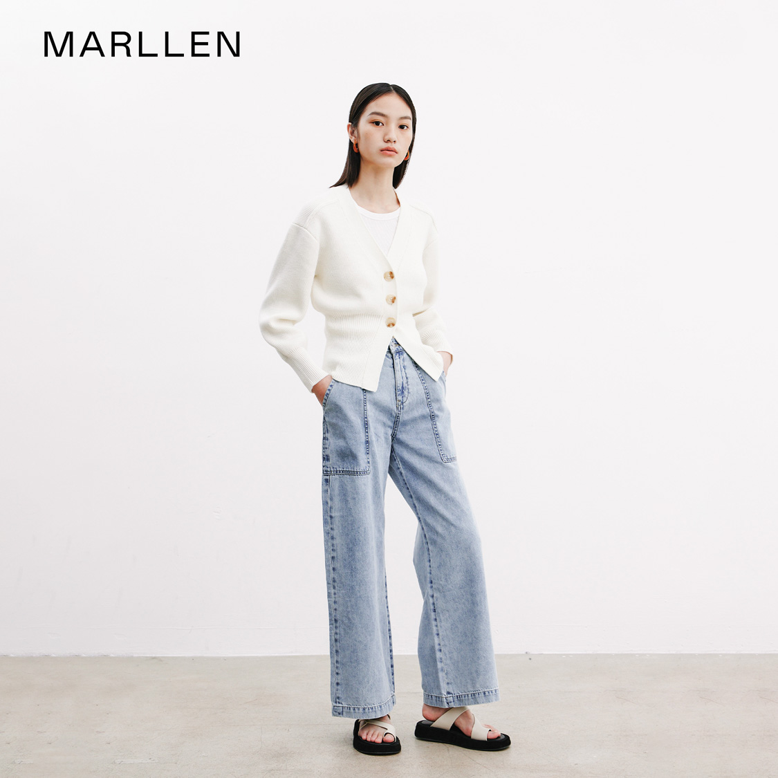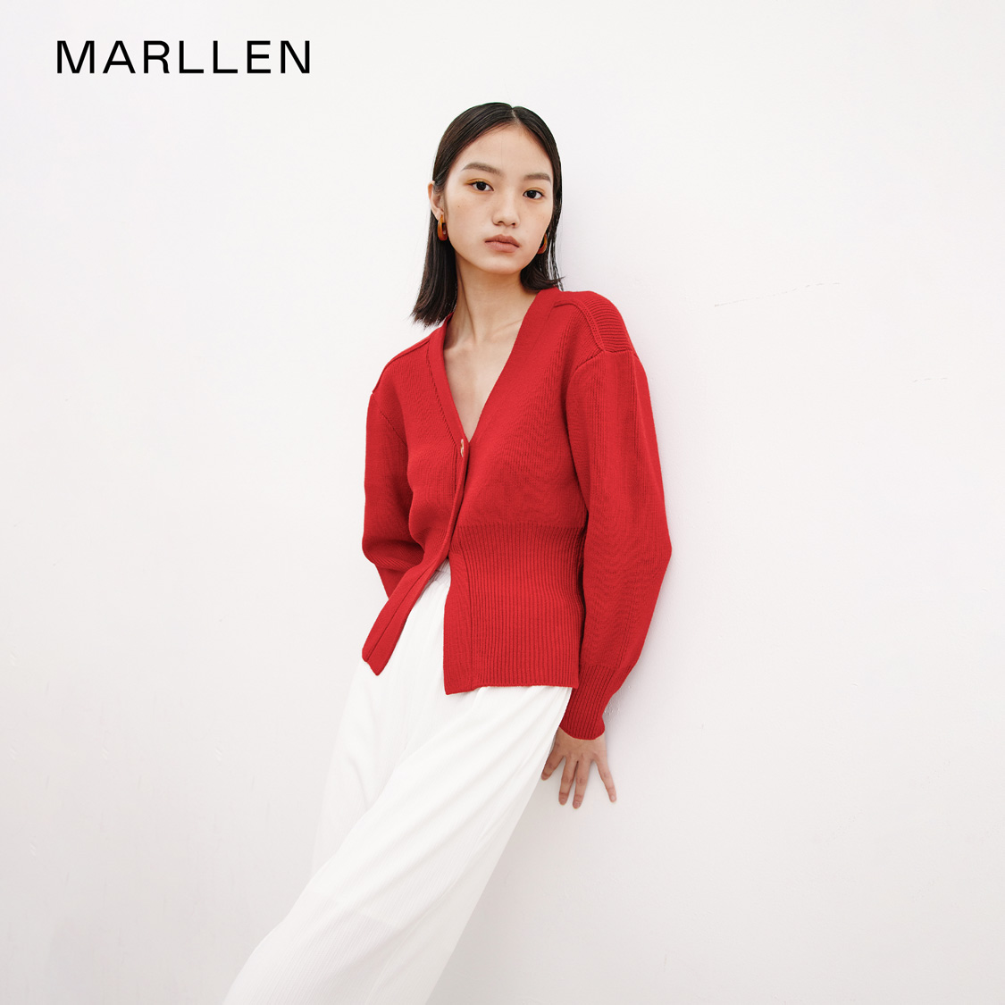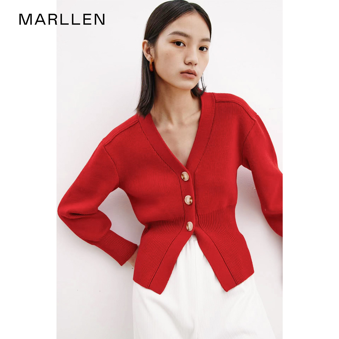 Marllen Black tech Shubounce wool retro palace Romantic Outline shaped single row buckle V collar close-knit cardiovert