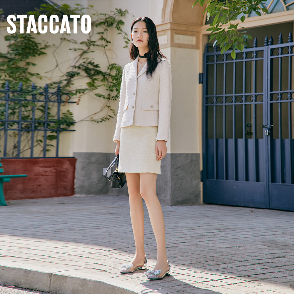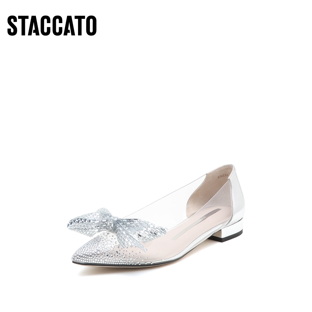 STACCATO2022 Summer new fairy butterfly knot sandal flat bottom light mouth Single shoe crystal wedding shoes EBZ22AQ2
