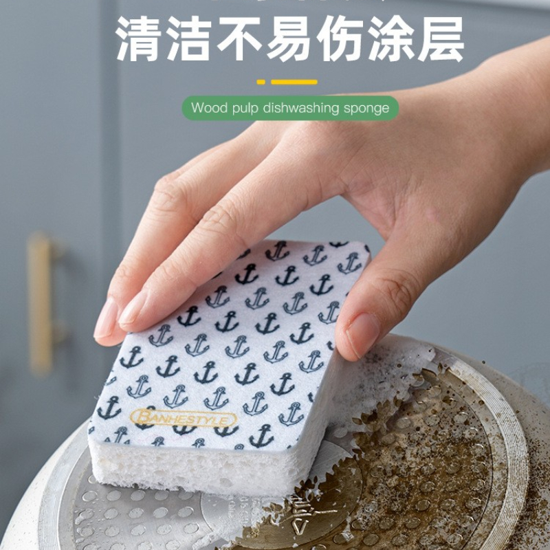 Natural Wood Pulp Cotton Rag Dishwashing cleaning sponge Brush The magic rubbing bowl Brush Pot Kitchen Decontamination of the Clean Cloth Water Absorption