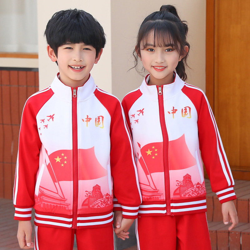 Primary school uniforms China Celebration Games class uniforms children's red three-piece kindergarten uniforms spring and autumn suits