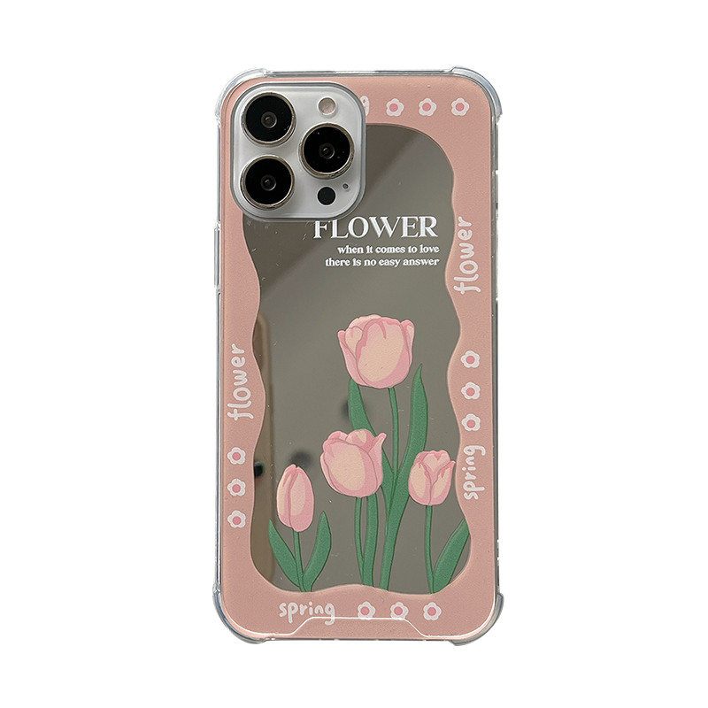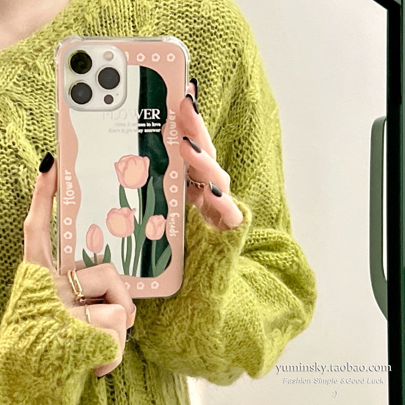 Ins wind pink tulip is suitable for iPhone14Plus Apple 11 13promax mobile phone case xs mirror 12 new 14Pro net red model 13Pro