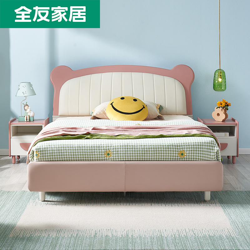 Full Friend Home Children's Bed Girl Princess Bed Bedroom Cartoon Pink Small Bear Single Bed Teenager Bed 121356