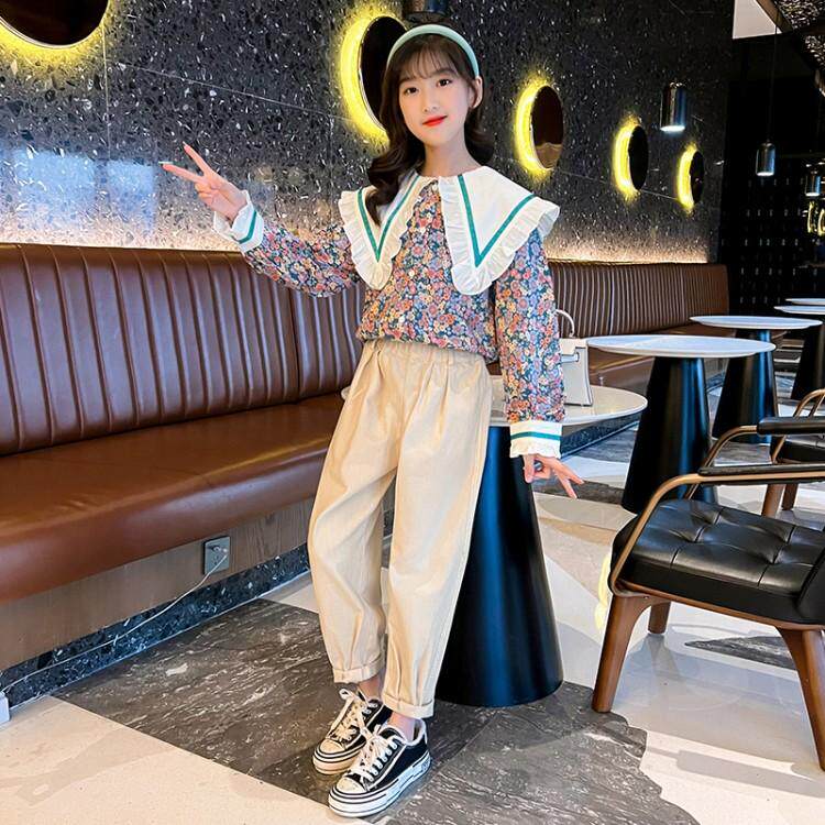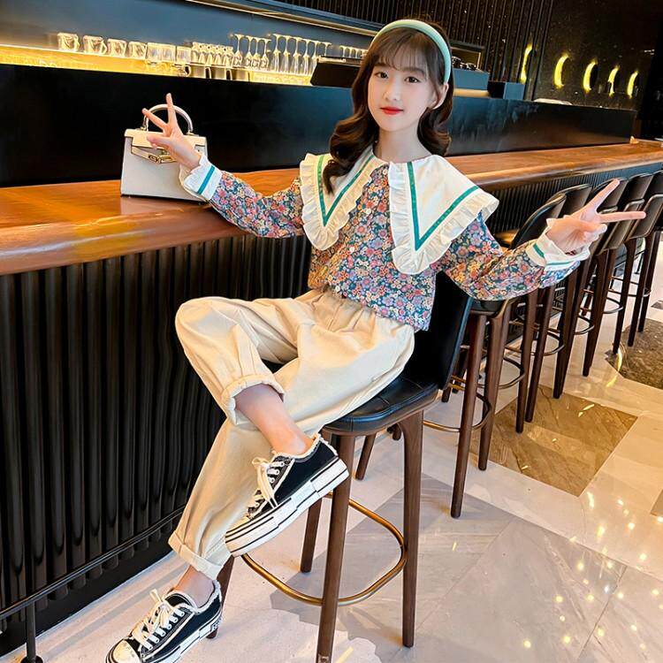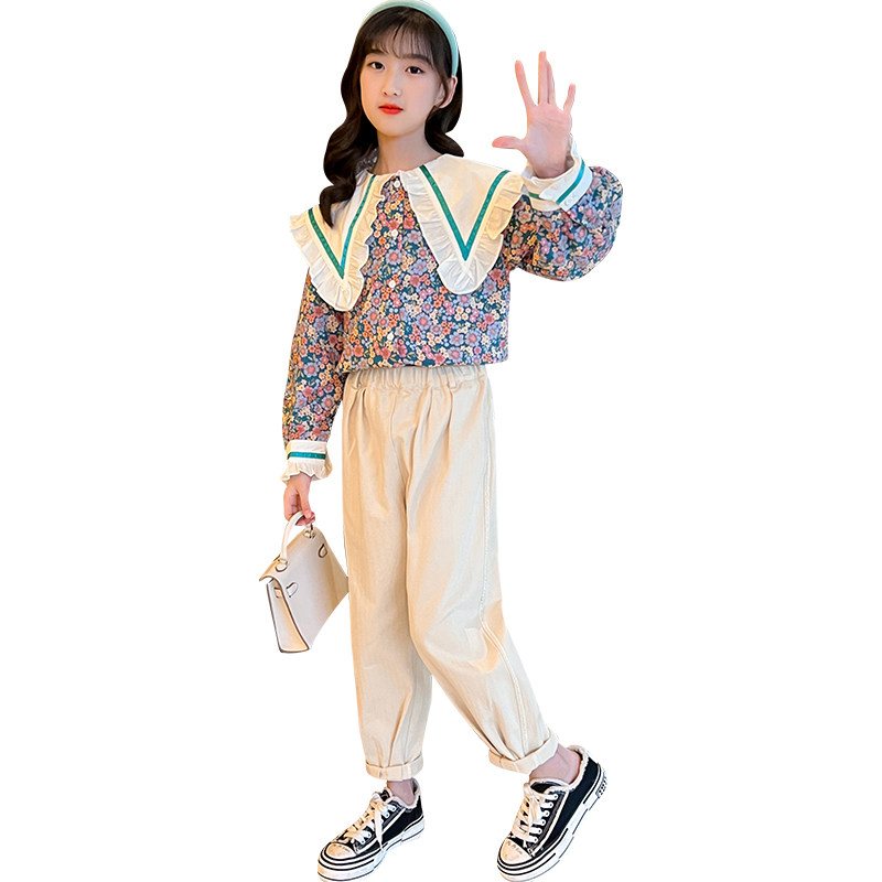 Girls' suits spring clothes 2022 new western style fashionable net red girls spring children's clothes in the big children's two-piece suit