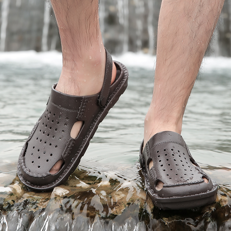 Sandals men's summer slippers men's Baotou shoes non-slip breathable hole shoes soft bottom wear-resistant dual-use sandals and slippers for men