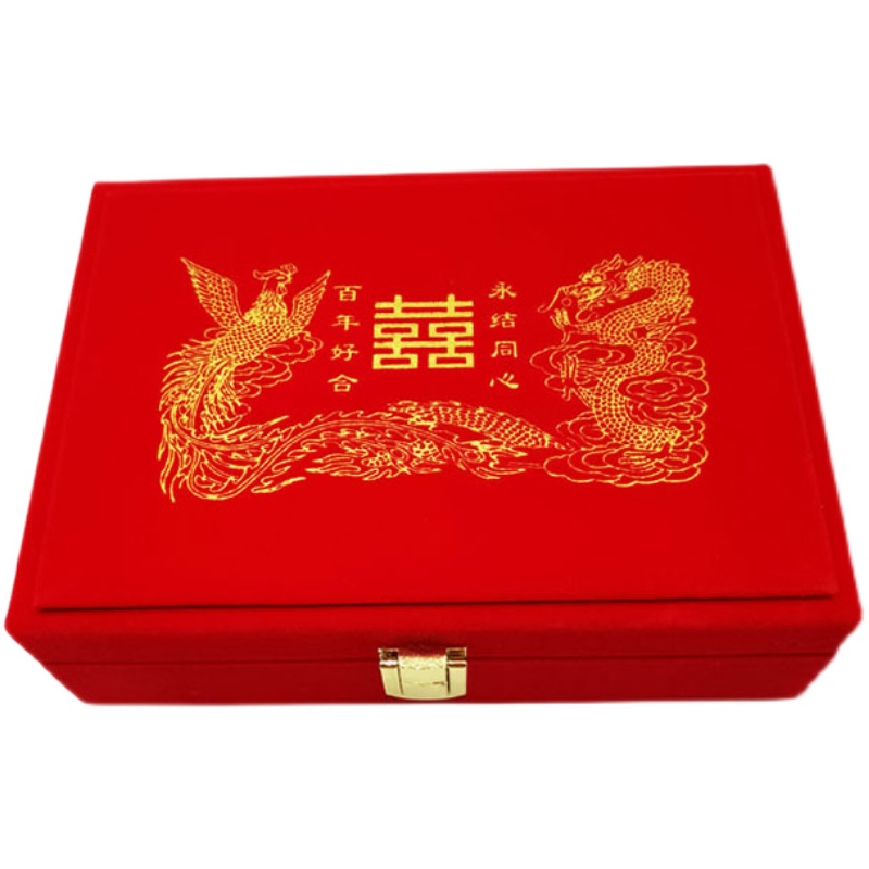 Gold Jewellery Triple Gold Set Box Red Suede Gentian Bracelet Necklace necklace Necklace Gift Packaging Wedding Celebration Dowry