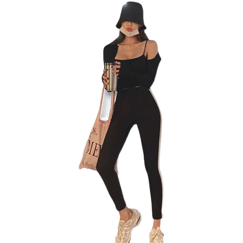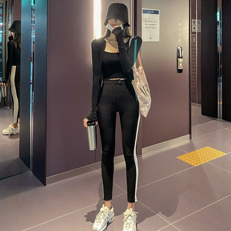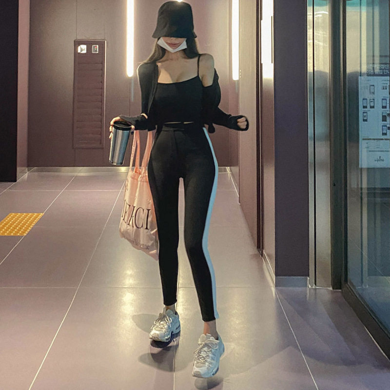 Sports Suit Women's Summer New Black Sashimi Web Red Sexy skinny fitness room wearing yoga outfit three sets
